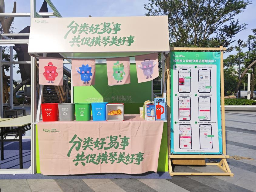 而在众多摊位中,一个由活力少年组成的“摊位”格外引人注目——这是由横琴粤澳深度合作区城市规划和建设局,以“分类互动赢好礼”为主题打造的垃圾分类科普摊位。
