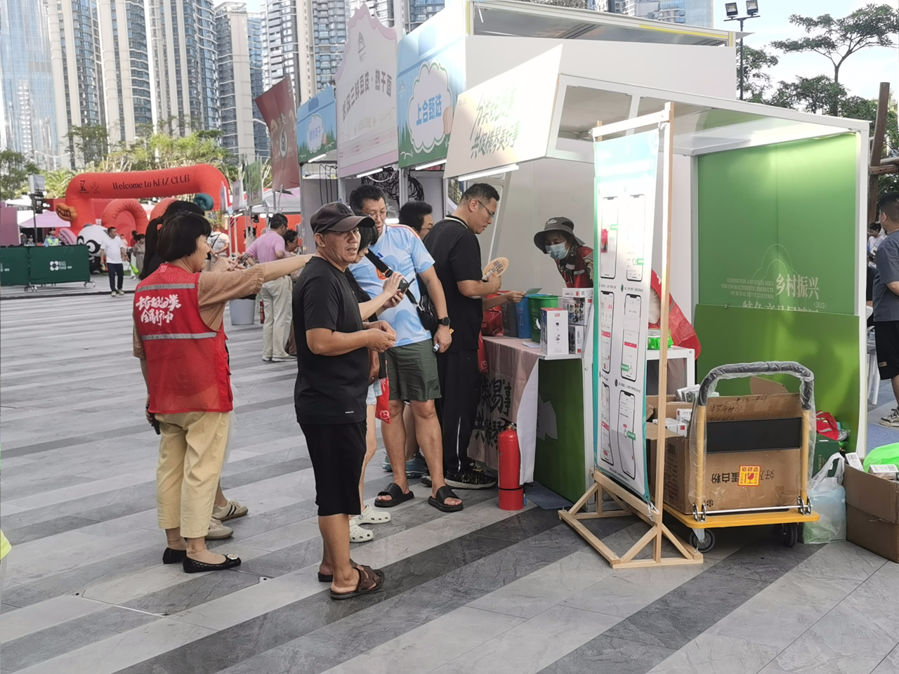 9月30日下午,活动现场热闹非凡,垃圾分类科普摊位前有序聚集大批游客。