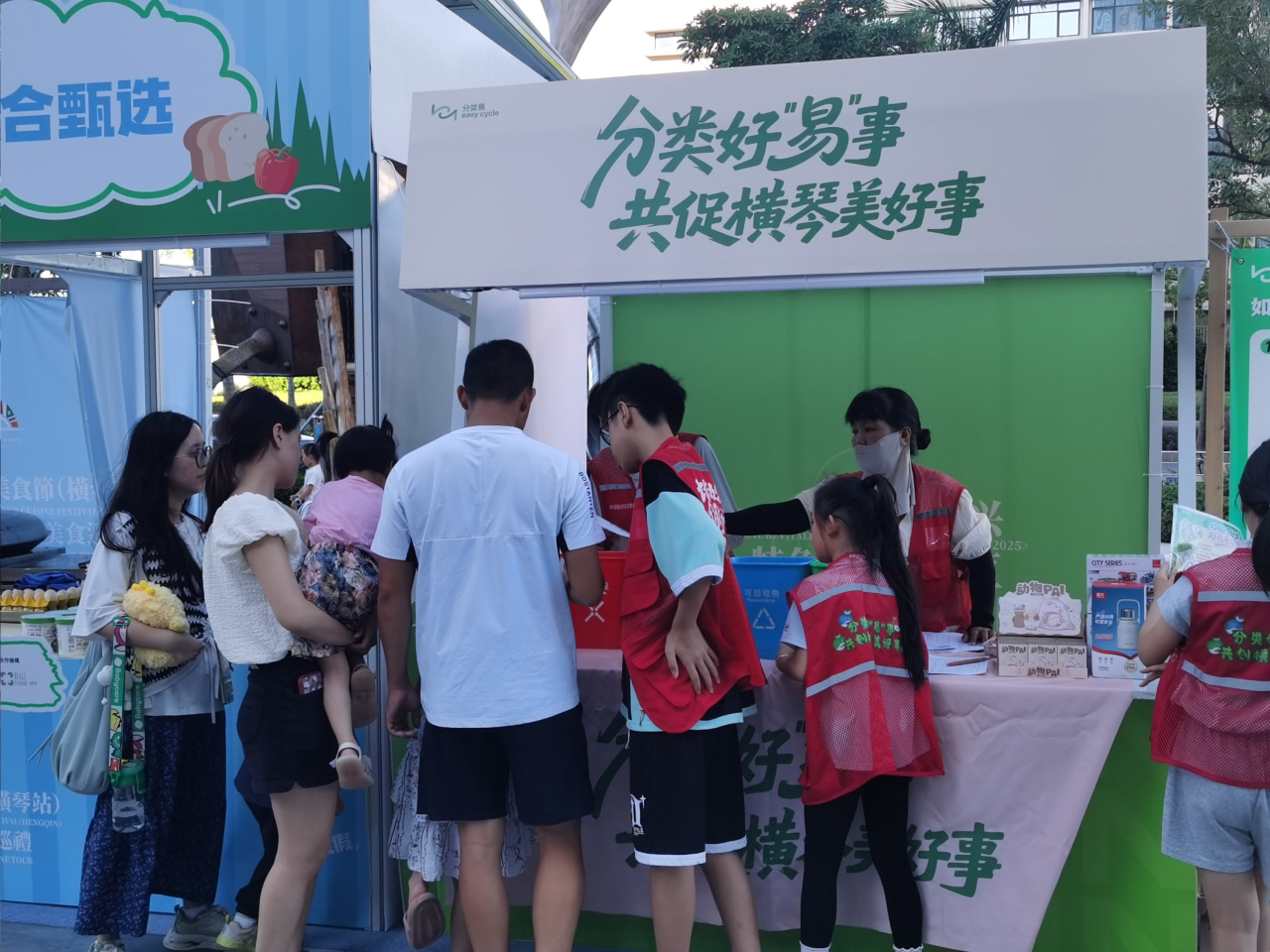 这群小小讲解员化身“绿色小摊主”,与大志愿者组队协作,通过“志愿服务队讲解+趣味科普互动+幸运抽奖激励”三大板块,将垃圾分类知识融入美食节的轻松氛围。参与者不仅能在欢乐体验中掌握分类技能,更能在互动中感受琴澳环保理念的交融,进一步强化低碳生活意识。