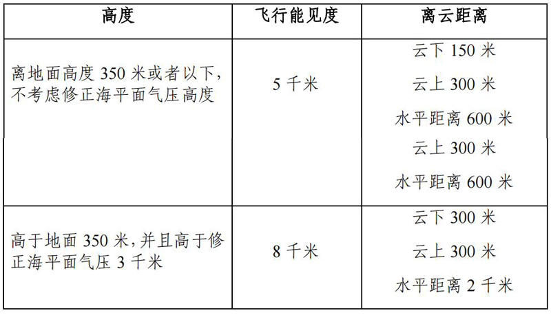 (b)飞行能见度或者离云距离低于下表规定值。其中,飞行能见度是指在飞行中驾驶员从驾驶舱前方看到或者辨认出的目标物平均水平距离。昼间飞行时,目标物为固定非发光物体;夜间飞行时,目标物为固定发光物体。