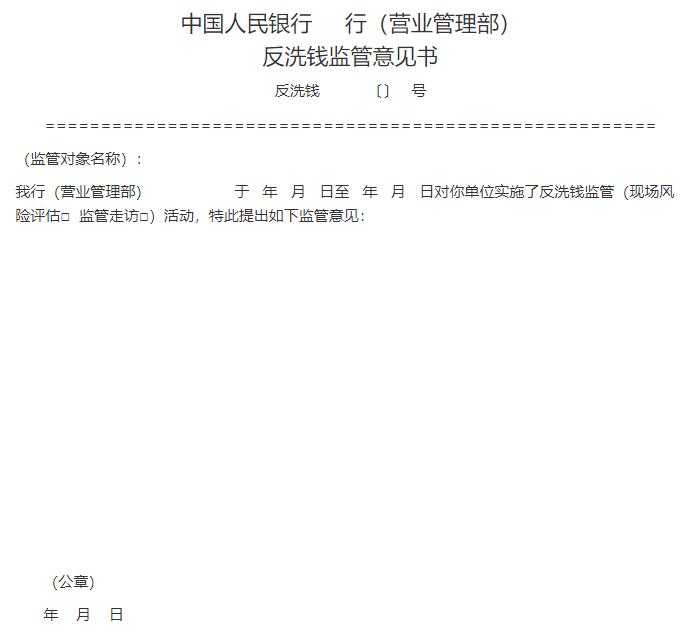 中国人民银行及其分支机构应当做好监管走访记录,必要时,可以制发《反洗钱监管意见书》。
