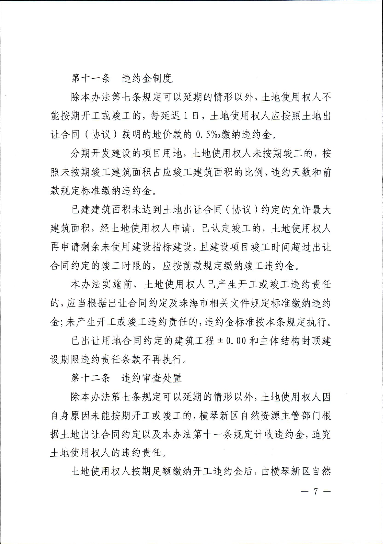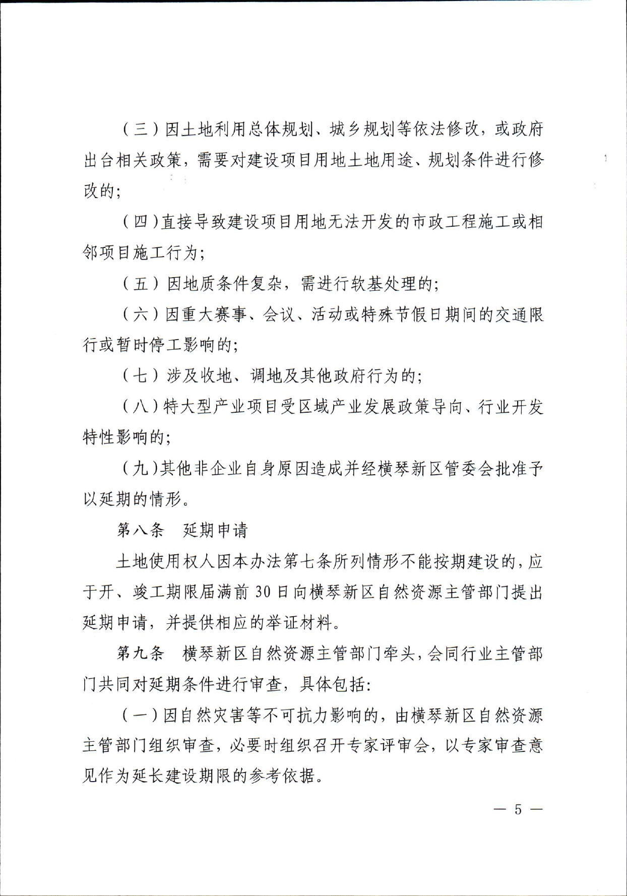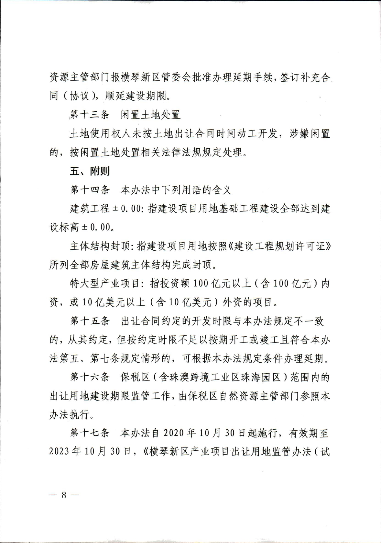 横琴新区管委会办公室关于印发《横琴新区及一体化新拓展区域出让用地建设期限监管办法(试行)》的通知
