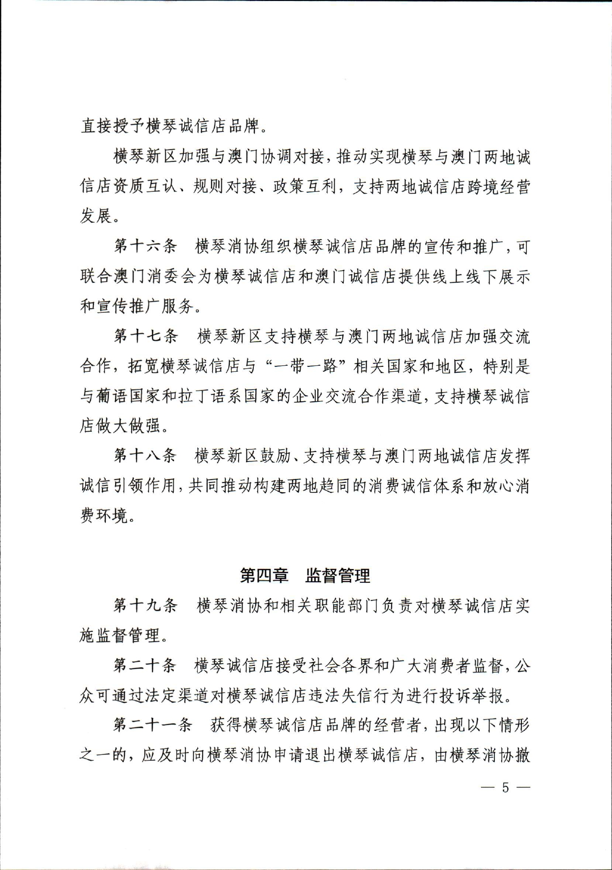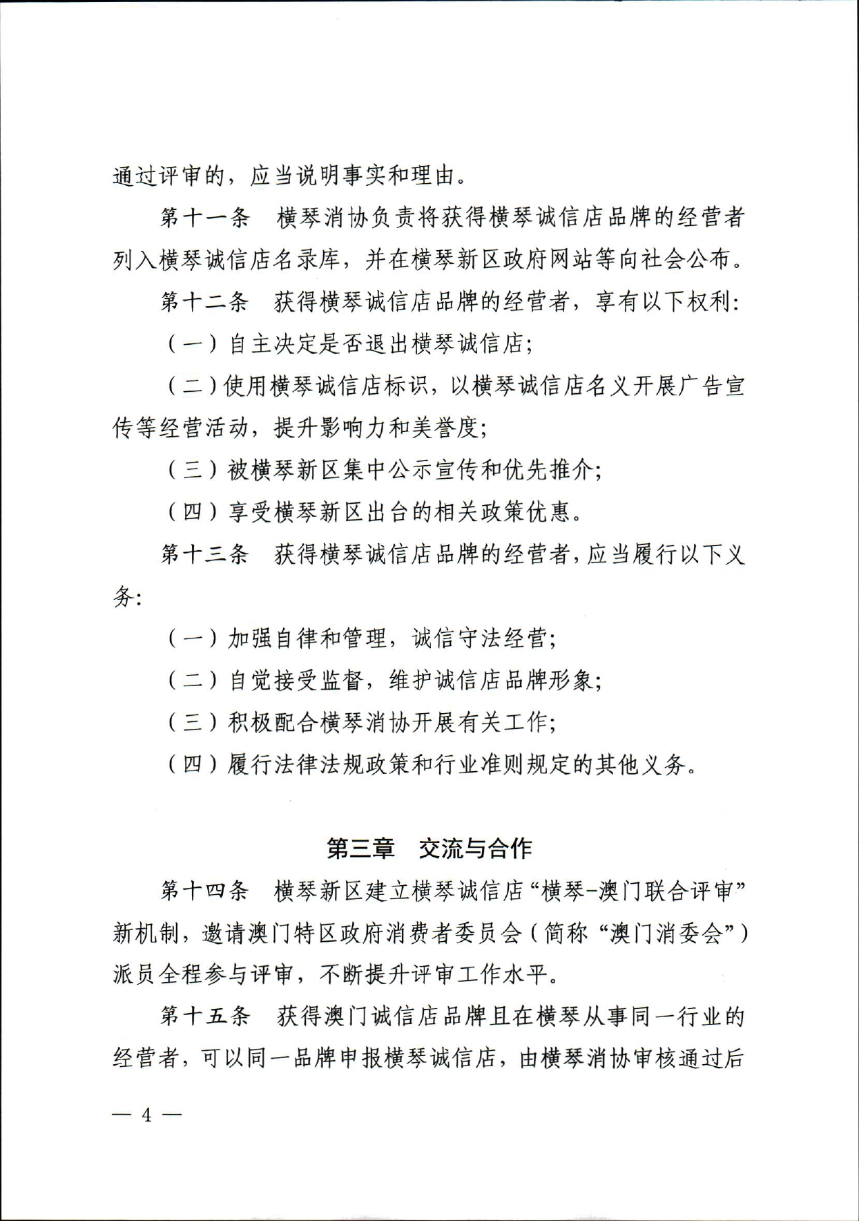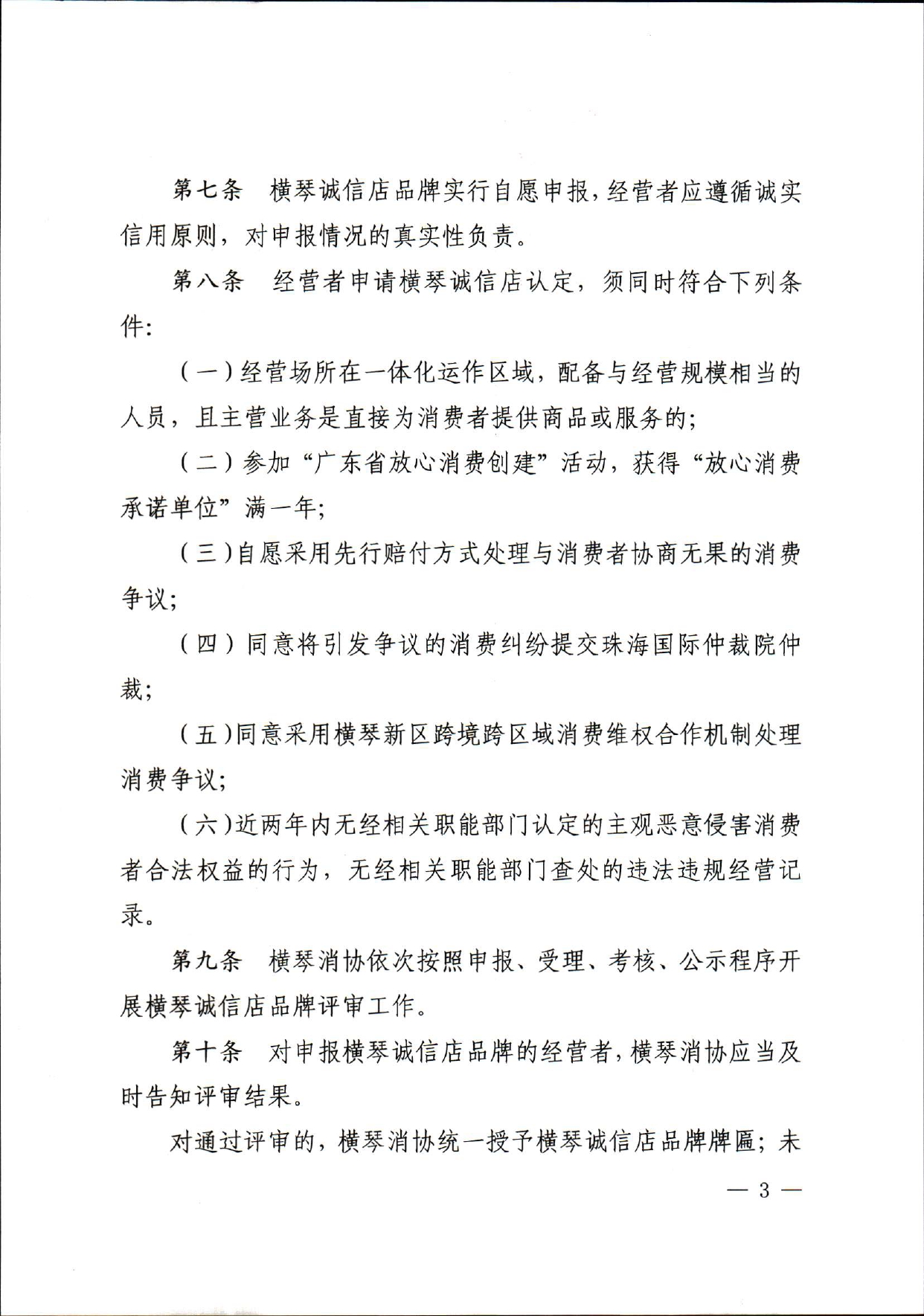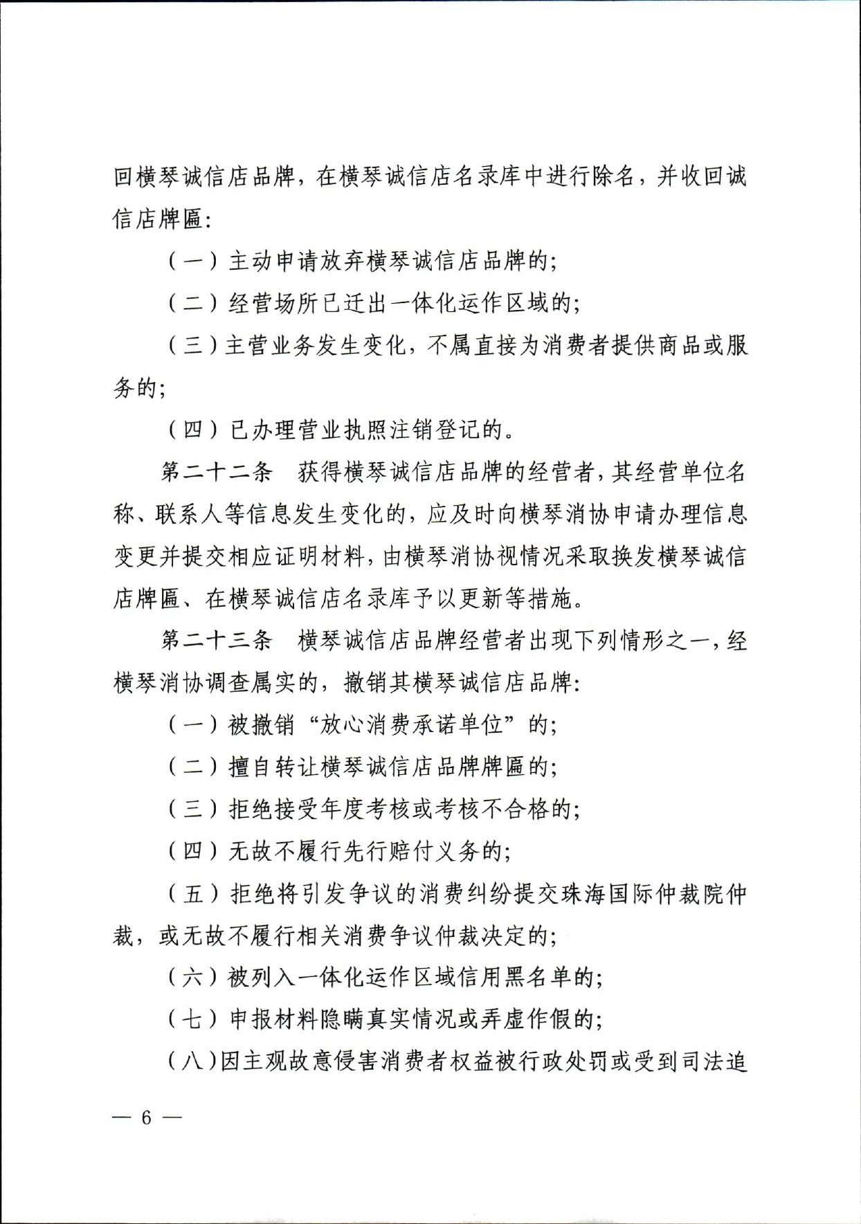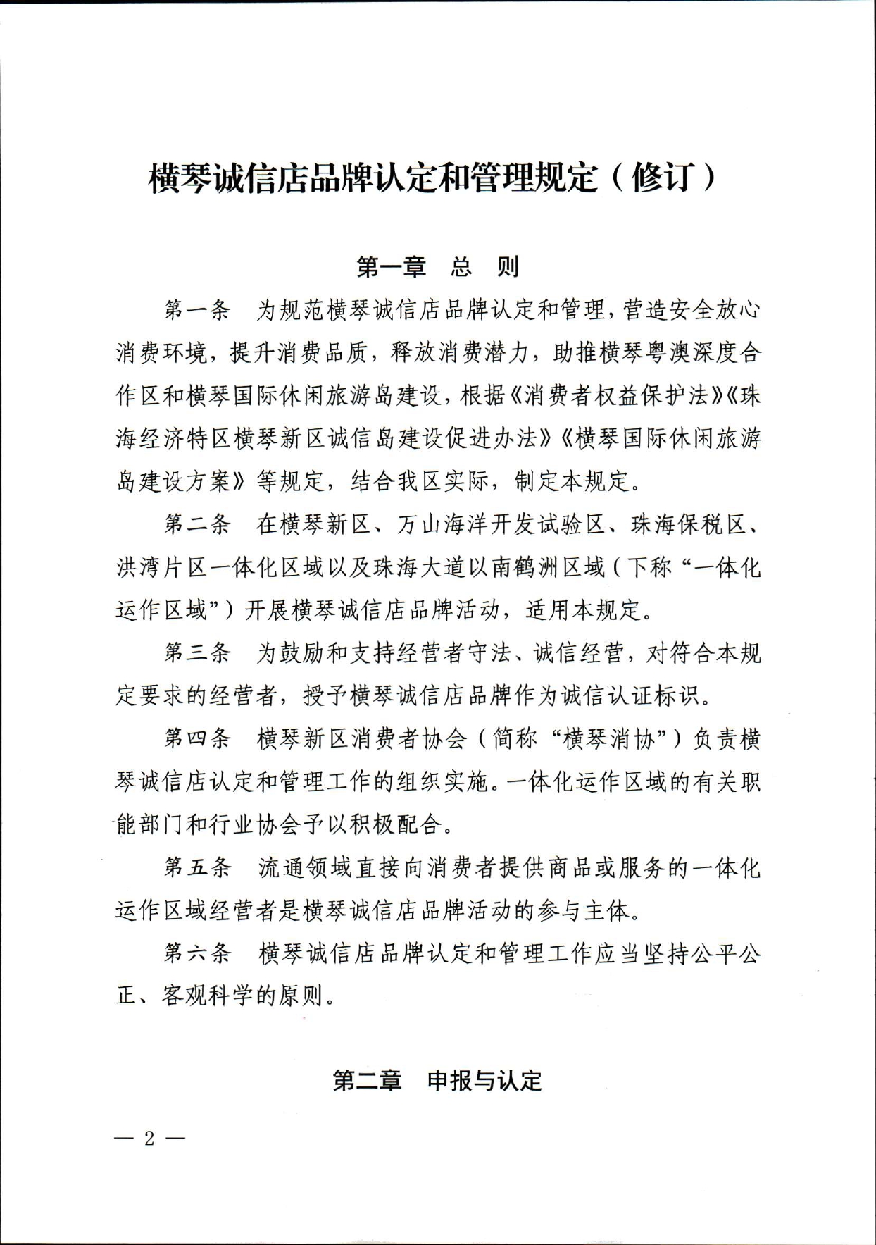 横琴新区党政办公室关于印发《横琴诚信店品牌认定和管理规定(修订)》和《横琴诚信店 品牌评审工作实施细则(修订)》的通知