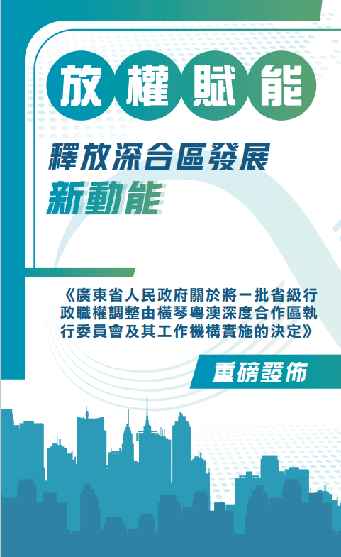 《广东省人民政府关于将一批省级行政职权调整由横琴粤澳深度合作区执行委员会及其工作机构实施的决定》(繁体版)