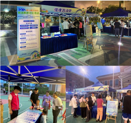 5月22-26日,联合商事服务局将“社区普法新风尚”走进小横琴社区、荷塘社区、莲花社区、新家园社区。普法现场通过设置了“知识问答大闯关”“民法典知识轮盘”“柴米油盐滚滚乐”等趣味互动游戏,让居民们在轻松愉悦的氛围中深入了解法律知识。工作人员和普法志愿者们积极向来往居民讲解民法典知识,通过发放民法典宣传学习资料,律师咨询和解读等形式,有效调动社区居民参与民法典学习的积极性。特别是“柴米油盐滚滚乐”等贴近民生的游戏项目,更是巧妙将民法典中条文与日常生活结合,提升社区居民牢记民法典法律知识的重要性。