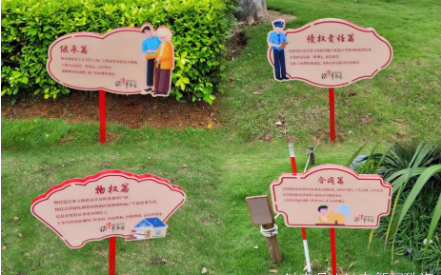 联合城市规划和建设局,在合作区花海长廊1-5号驿站的重要步道区域安放民法典知识展示牌。通过概述民法典七篇主体内容,进一步将“学法治法守法”融到琴澳居民散步、骑行和游玩等日常生活行为中,逐渐搭建合作区法治生活新环境。