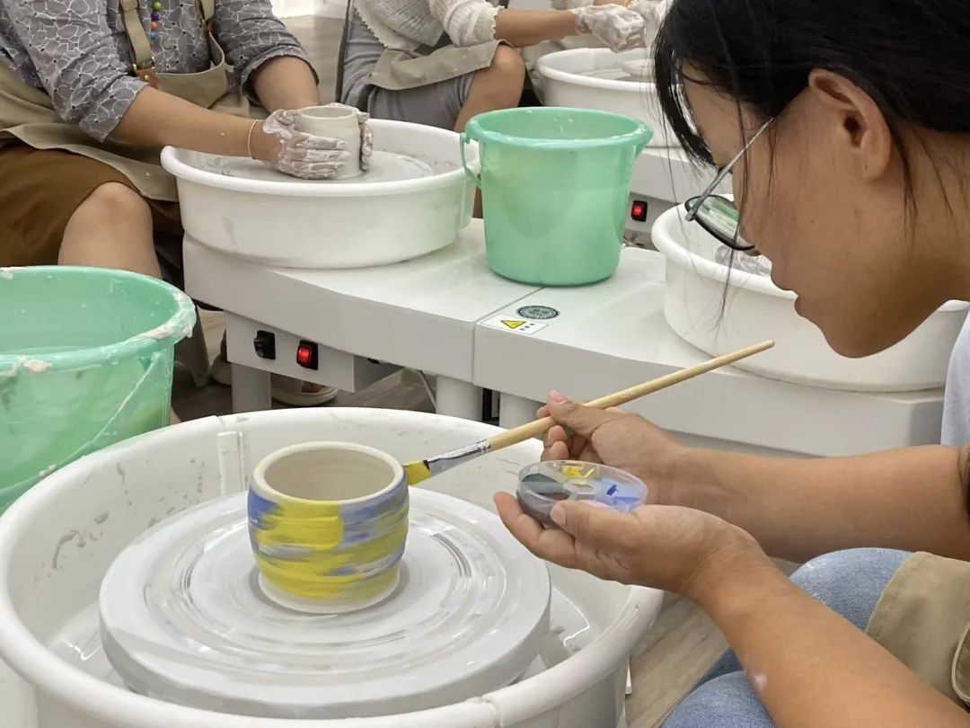 学员们逐渐掌握了揉泥、拉坯、修坯、上釉等基础技法,那份专注与成就感,就是课程最美的风景。