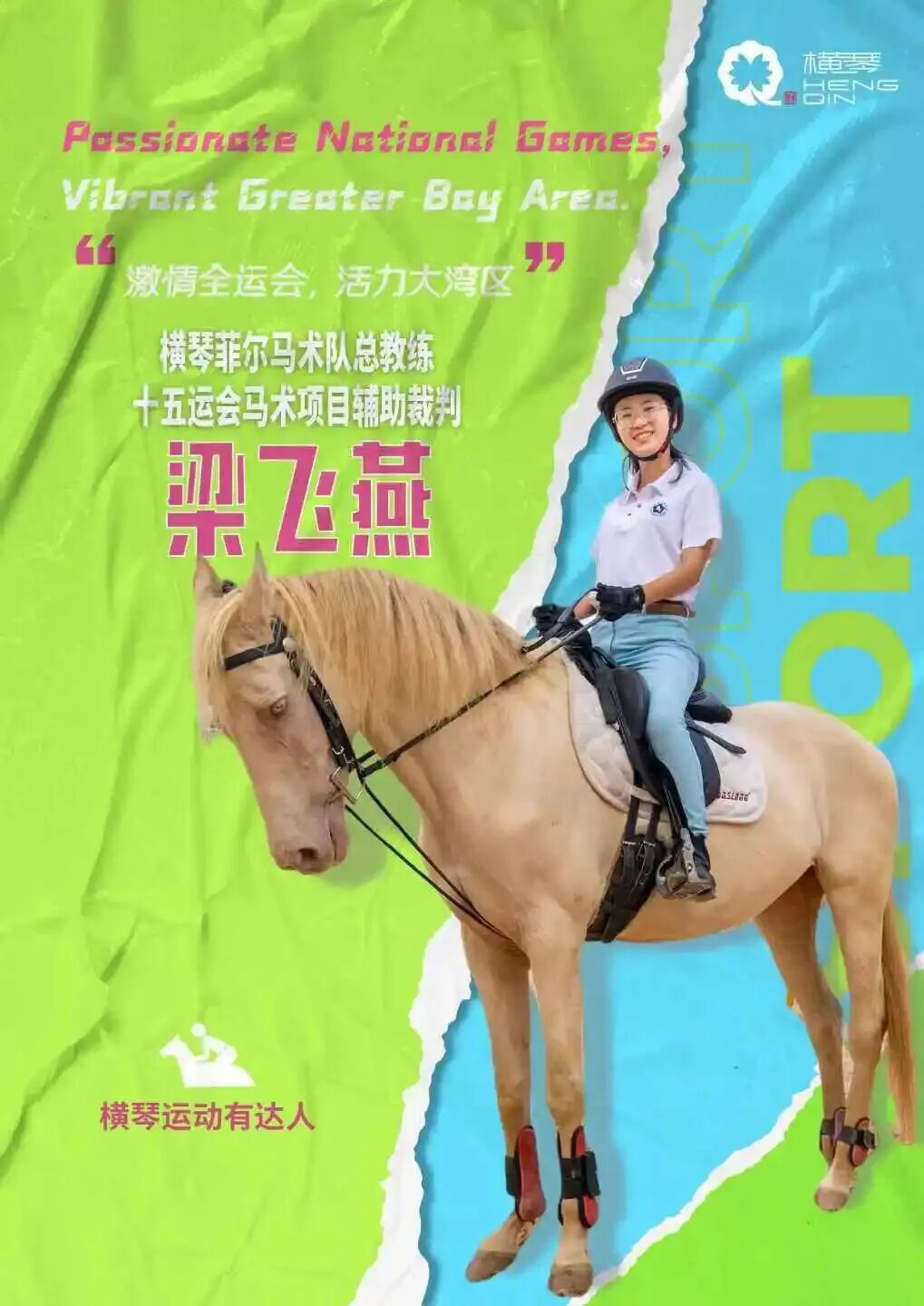 13年后,一路驰骋赛场、策马扬鞭的梁飞燕,已摇身一变成为横琴菲尔马术队总教练、国家二级马术裁判员。相比个人在竞技场上夺得殊荣,她更渴望与团队一起,为横琴组建一支正式的青少年马术代表队,让孩子们登上更高水平的舞台,同时也为琴澳地区培育更多年轻的马术专业人才。