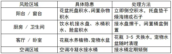 📢📢📢 台风过后需注意防范 以下四类健康隐患 👇👇👇   暴雨后,积水、脏乱环境易导致蚊子、苍蝇大量孳生,居民区或者临时安置点可能成为老鼠的逃生地,病媒传染病风险增高。   常见病媒有害生物中,蚊子可传播登革热、基孔肯雅热等疾病,老鼠可传播钩端螺旋体病、流行性出血热等疾病。   防范指南:   做好环境卫生,防蚊蝇老鼠   ◆避免在不干净的水中游泳、洗衣服,在水中行走时穿长筒胶鞋。   ◆防止食物被老鼠吃或被老鼠的排泄物污染。   ◆清理处置动物尸体时应做好个人防护。   ◆利用纱窗、蚊帐、驱避剂等方法防蚊蝇,布放鼠夹、鼠笼、粘鼠板等。   ◆野外活动人员谨防蚊虫叮咬,外出时穿浅色长袖衣裤。   ◆打扫环境卫生,及时清理被浸泡的环境和物品,清除蚊虫孳生地。   ◆严格防蚊叮咬。如出现发热、关节痛/头痛、皮疹等症状,请及时就医。   ◆清除蚊虫孳生地-室外自查:      ◆清除蚊虫孳生地-室内自查:   暴雨容易导致饮用水源受地表各种垃圾污物的污染,容易发生饮用水污染;污水使蔬菜、水果等食物受浸泡污染,因此容易导致肠道感染性疾病的发生;台风过后气温升高、强降雨令环境湿度增大,食物容易滋生细菌、霉菌而变质;环境的脏乱带来苍蝇大量繁殖容易引发肠道传染病和食物中毒。   常见的肠道传染病有霍乱、伤寒、细菌性痢疾、甲型肝炎,以及轮状病毒(B组)、诺如病毒感染性腹泻等。   防范指南:   注意饮食卫生,防止“病从口入”   ◆不吃淹死、病死的禽畜,不吃腐烂变质食物。   ◆不喝生水,饮用煮沸后的市政供水或经检测合格的瓶装水。   ◆避免生食或半生食,熟食要防蝇,剩饭菜彻底加热后再食用。   ◆不用脏水漱口或洗瓜果蔬菜;碗筷应煮沸或消毒碗柜消毒,刀、砧板、抹布也应勤消毒。   ◆海鲜、肉类和奶制品等食物妥善保存与处理,防止滋生病菌或变质。   ◆制作食物和进食前洗手,安全处理患者呕吐物、排泄物并立即洗手。   ◆出现腹泻症状时应及时就诊、自觉隔离。   暴雨后,路上积水较深,在污浊的雨水中行走,身体接触部位容易发生浸渍性皮炎,及受各种微生物的侵袭,接触传播类疾病的发病率可能增加。   常见的接触传播类疾病有浸渍性皮炎、手足口病、急性出血性结膜炎“红眼病”等。   台风前后气候变化大,个人抵抗力下降、安置区人员聚集等因素易导致呼吸道疾病的传播。   常见呼吸道传播疾病有流行性感冒、新冠病毒感染以及肺炎等。   防范指南:   保持室内通风,自我健康监测   ◆保持良好健康生活方式,充足休息,避免疲劳。   ◆保持室内空气流通,每天开窗2-3次,每次30分钟。   ◆保持良好的卫生习惯,勤洗手,咳嗽或打喷嚏时用纸巾、手肘等遮住口鼻,尽量避免触摸眼睛、鼻或口。   ◆提倡自我健康监测,有呼吸道症状时要做好防护并及时就医。      转发提醒身边人