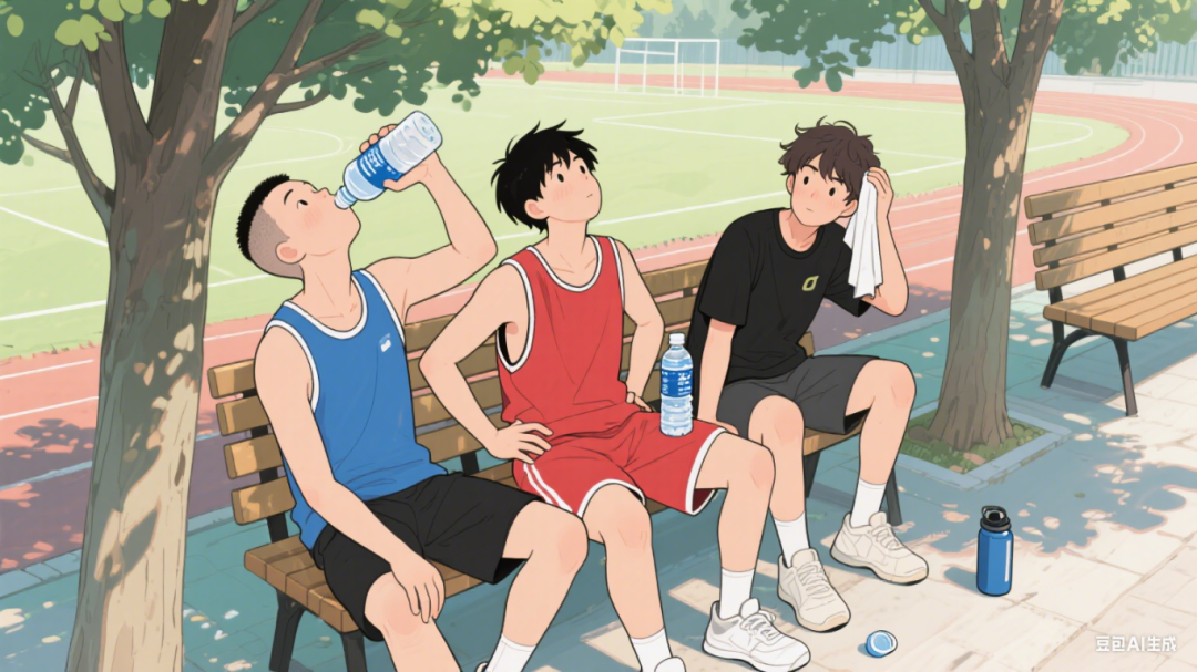 高温下,身体通过出汗散热,会带走大量水分和盐分。同学们要定时、少量、多次饮水,每次100ml-150ml。大量出汗后,应喝淡盐水或含电解质饮料,补充流失的盐分和电解质。含糖饮料、酒精、含咖啡因的饮料会加重身体负担,应尽量避免大量饮用。