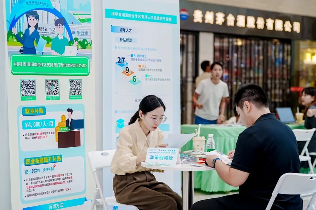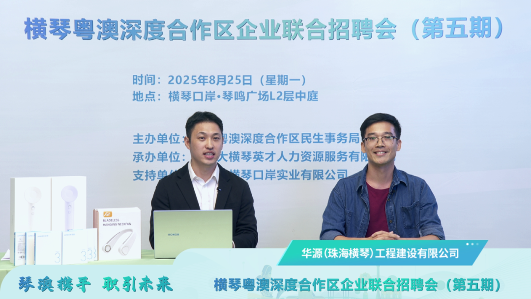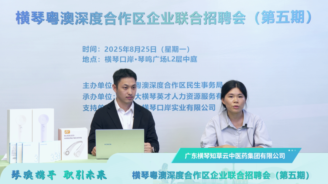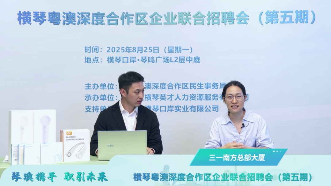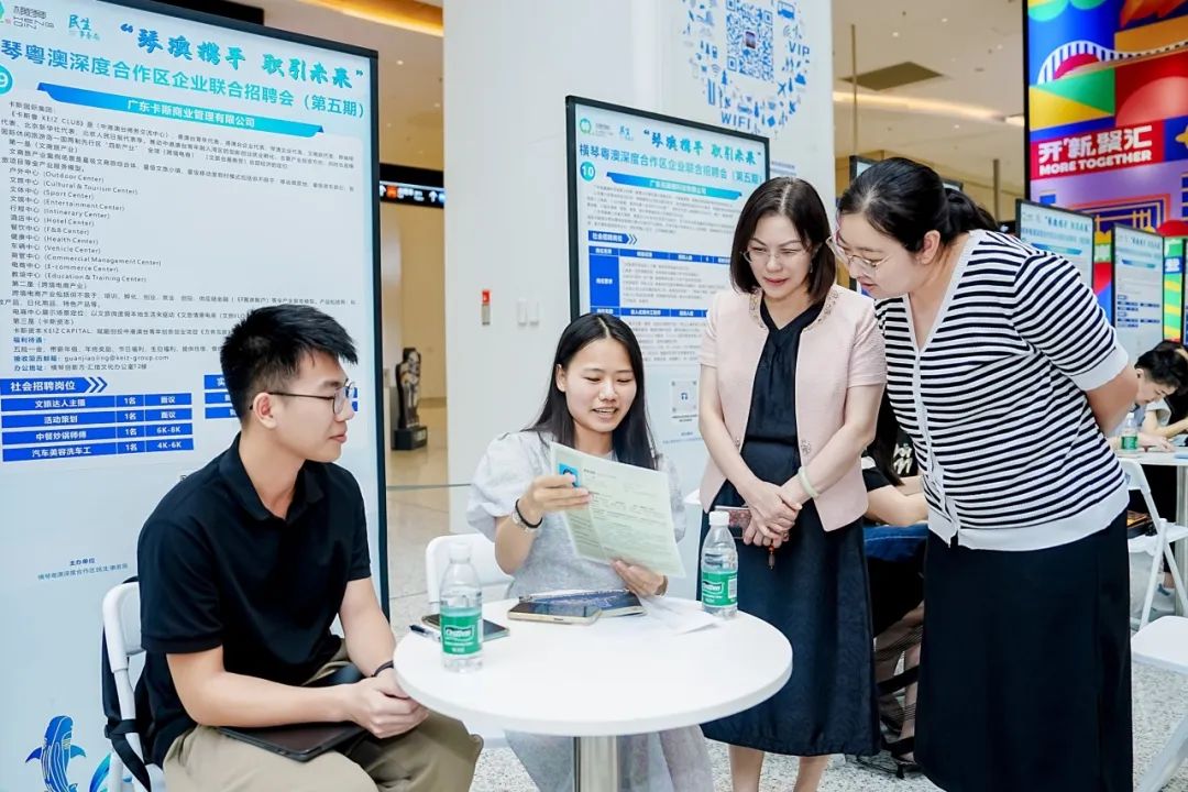 “琴澳携手 职引未来” 合作区企业联合招聘会(第五期) 在横琴口岸成功举办 本次活动采取“线下招聘+线上直播带岗”形式,由珠海横琴路坦信息服务有限公司、珠海澳大科技研究院、广东丸美生物医学有限公司等50家合作区优质企业提供369个岗位、770余个职位空缺,涵盖科技研发、中医药、现代金融、文旅会展等合作区“四新”产业领域,吸引来自澳门和内地众多求职者的高度关注和积极参与。 本次招聘会由珠海大横琴英才人力资源服务有限公司承办,珠海大横琴口岸实业有限公司支持协办。为全面服务企业和求职者,除线上线下设有招聘专区外,现场还特别设置面试和简历指导专区以及政策咨询专区,吸引了近百名求职者排队咨询。 线上直播带岗环节,合作区民生事务局副局长许凤梅走进直播间,向观众介绍合作区的战略定位、营商环境及区位优势,并与线上观众积极互动。 她强调,建设横琴粤澳深度合作区是中央的一项重大战略部署,习近平总书记先后五次来到合作区考察,指出“澳门+横琴”正在成为丰富“一国两制”实践的新示范。她还重点介绍了由合作区民生事务局与澳门劳工事务局携手搭建的“澳门居民招聘专区”,为澳门青年提供一站式合作区生活资讯和就业服务。目前该平台已发布近140个岗位、超300个职位空缺,希望来自澳门的求职者们多多关注,把握机遇、勇敢尝试,在合作区开启职业生涯新篇章。 此后,艾威药业(珠海横琴)有限公司、三一南方总部大厦等多家合作区企业代表陆续走进直播间,详细讲解企业背景、岗位晋升通道及当前招聘需求,并实时为参与直播的观众答疑解惑。直播带岗专区累计吸引超2.3万人次观看,互动气氛热烈。 许凤梅还在招聘会现场走访企业展位,与企业代表面对面交流,关切询问企业的招聘岗位详情、人才录用流程及现场简历收取情况等,并祝愿企业招聘到心仪的人才。 来自珠海原妙医学科技股份有限公司的招聘经理说道: 今天现场人很多,我们收到了不少简历,接下来会跟进面试等后续招聘流程,未来我们也希望能继续参加合作区举办的此类活动。 广东卡斯商业管理有限公司的人事行政主管表示: 此次招聘会组织得力,流程顺畅,从前期报名到招聘现场工作人员都提供了全面的协助,感谢合作区民生事务局为企业搭建的招聘平台,为我们招揽人才提供了新路径。 参与直播带岗的艾威药业(珠海横琴)有限公司人力专员认为: 这次线下+线上的招聘形式很新颖,我们可以通过直播在线向求职者介绍企业的基本情况和岗位需求。有的求职者看了我们的直播后就来现场摊位投递简历了,很感谢主办方为我们提供了多元的招聘形式。 居住在合作区的澳门居民黄女士说: 我很希望能在横琴就业,横琴的就业环境很好,在家门口就能求职,非常便利,还有直播渠道供无法到场的朋友投递简历,希望今天大家都有所收获。 据统计,截至8月25日17时,合作区企业现场共收取简历632份,其中澳门居民简历29份,现场初步达成就业意向近180人次;直播带岗专区共收取简历952份。 温馨提醒: 线上简历投递将开放至8月29日,欢迎求职者关注和投递心仪的岗位! 下一步 合作区民生事务局 将继续以企业和求职者需求为导向 不断拓展 “琴澳携手 职引未来” 品牌招聘活动的内涵与形式 进一步打通人才供需双向通道 全面提升合作区公共就业服务的 专业化、精细化水平 为合作区高质量发展持续注入动能 助力琴澳融合迈向新阶段
