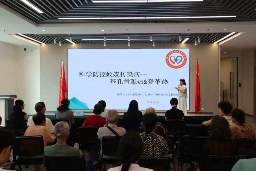 正值“两热”(基孔肯雅热、登革热)防疫关键期,横琴红旗社区卫生服务中心副主任医师温丹丹带来《关爱家园·“两热”防疫科普宣讲》,向社区居民普及预防蚊媒传染病的健康知识。