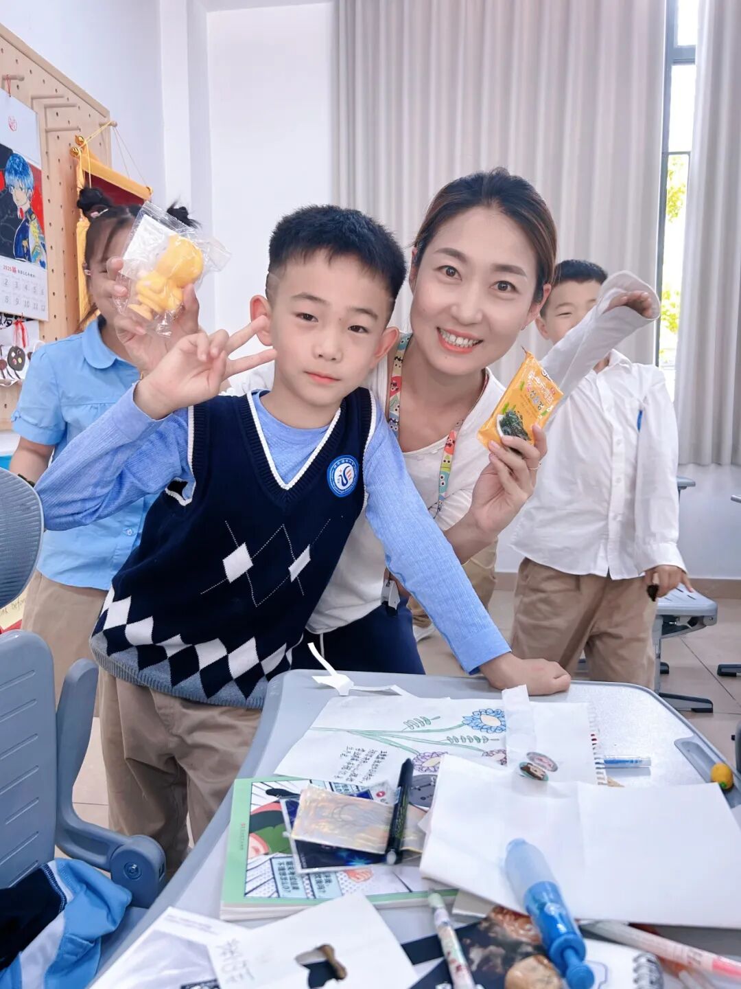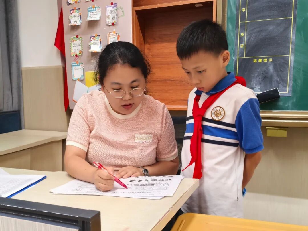 上学年,她新接任的三年级某班英语基础较薄弱,同时面对新教材难度提升、课时压缩的双重挑战,她与备课组研磨教材、精雕课件,推出“小老师”帮扶、小组PK、课堂角色扮演等举措;自编口诀故事,帮助学生记忆单词;课后逐一点评口语作业、规范书写细节;利用午休与下班时间为学困生“加餐”。一学期耕耘终获硕果,该班期末平均分提高15分,学生的英语水平也有了质的飞跃,得到了家长们的一致认可。