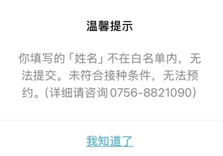 2. 预约系统嵌入已建档老年人及纳管慢病患者的白名单,如预约过程中提示“你填写的【姓名】不在白名单内,无法提交。”,说明不符合接种条件,可于周一至周五上午8:30-11:30到中心建档登记。