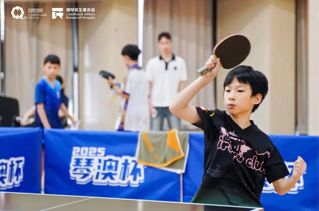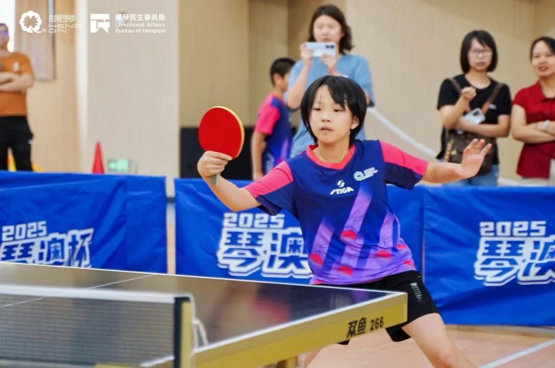 乒乓球赛场上,小小的银球在球台上来回飞梭,划出一道道优美的弧线。琴澳两地的青少年选手们精神饱满、斗志昂扬地进行竞技。