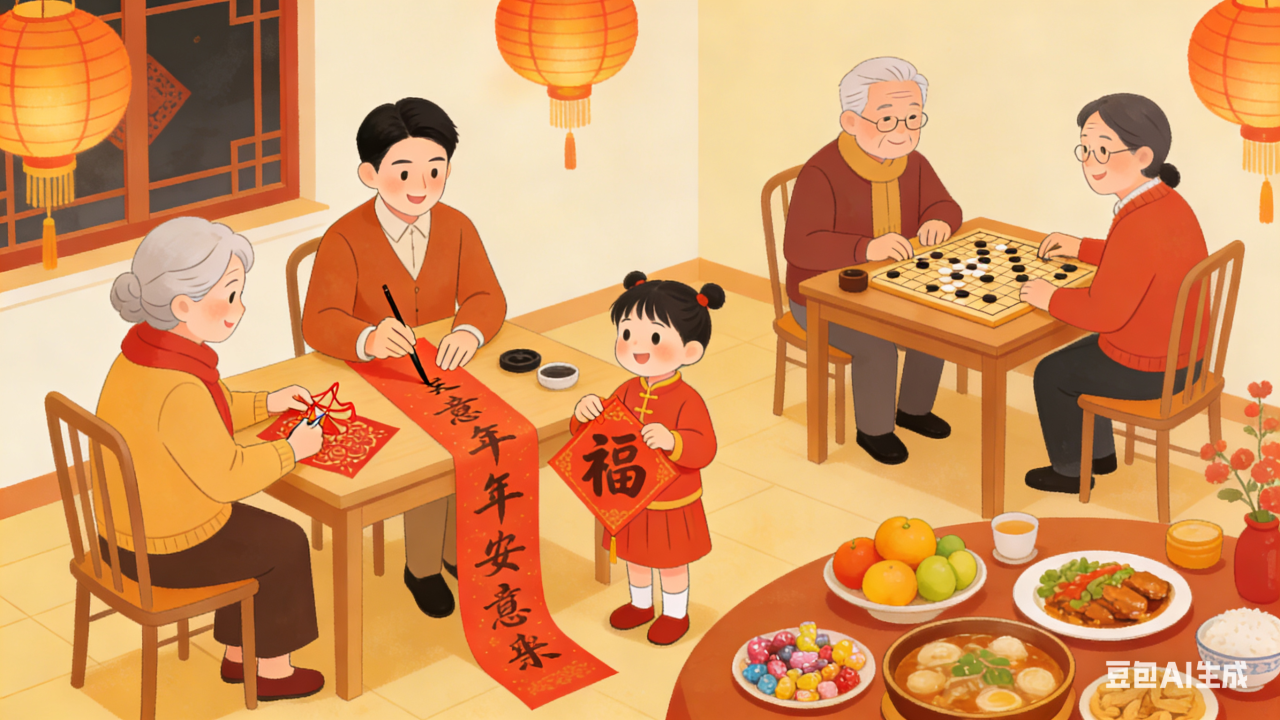 假期最珍贵的是“在一起”的时光,是全家围坐写春联、剪福字的热闹,是一起下下棋、做游戏的欢乐,是共享年夜饭的温馨团圆。
