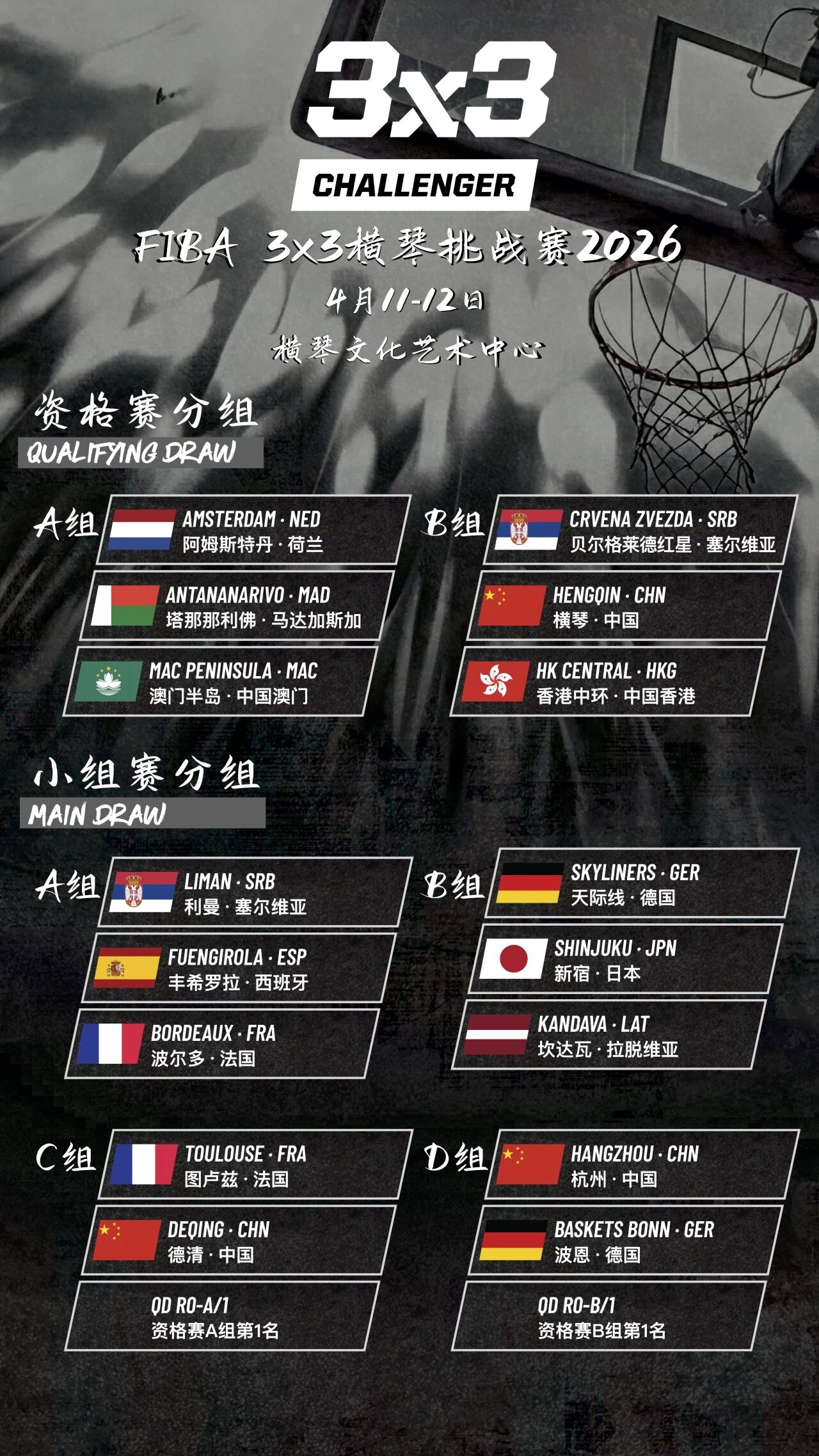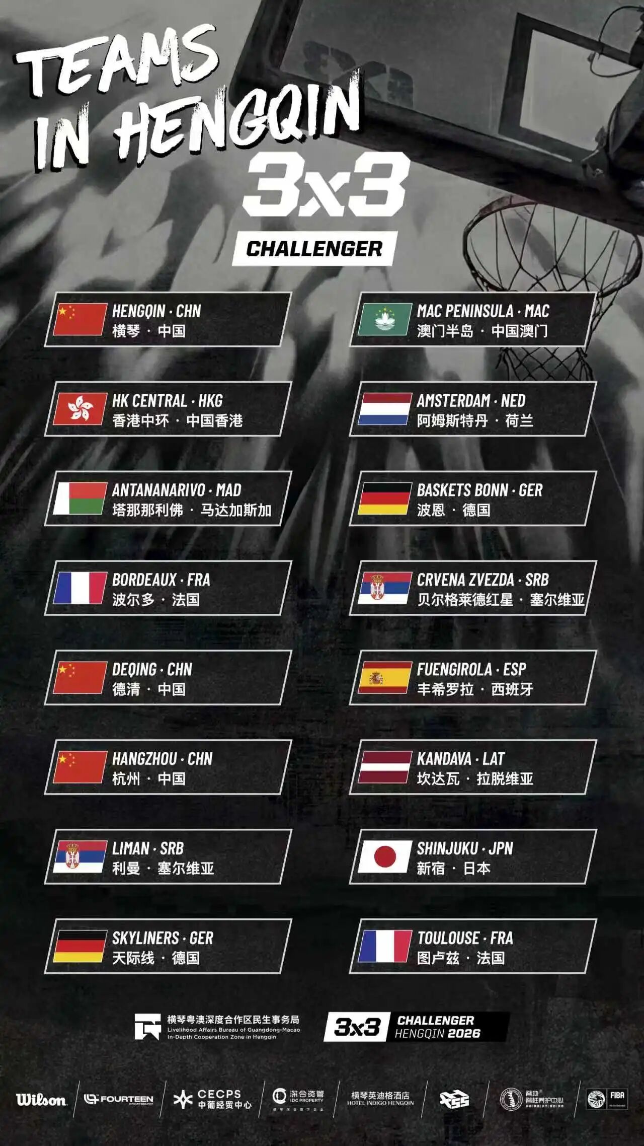 国际篮联三人篮球职业巡回赛揭幕战首次落地横琴,来自欧洲、亚洲、非洲等地区16支高水平球队齐聚一堂;