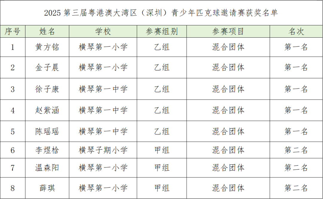 横琴青少年业余体育学校(下称业余体校)受中国澳门匹克球体育总会邀请,选派8名横琴青少年匹克球队队员与5名澳门学生联合组队,参加甲、乙两个组别赛事。
