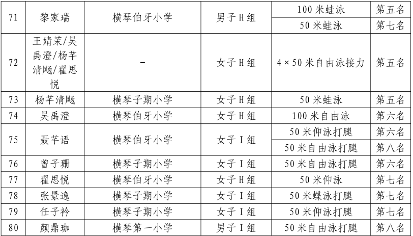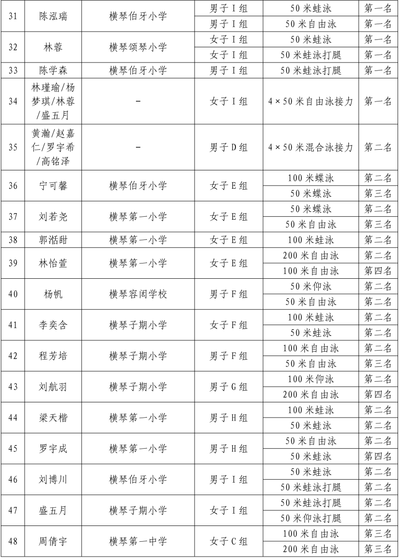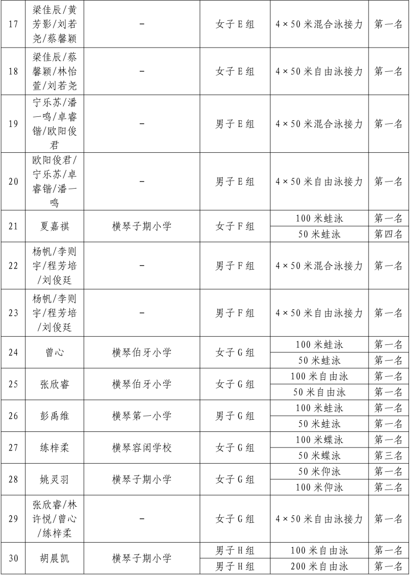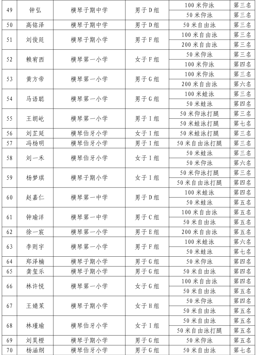 最终,横琴青少年游泳队共斩获49枚金牌、24枚银牌、19枚铜牌,同时在40个项目中成功跻身前八名,其中“横琴青少年一队”更位居金牌榜首位。