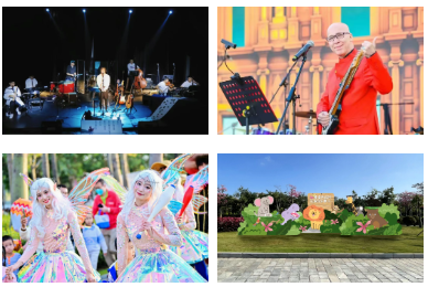 现场不仅设有五个不同风格的“花间剧场”,呈现《FaFa Land》经典歌舞、复古舞厅表演、咏春拳术及梦幻泡泡秀等快闪演出,更邀请澳门人乐队队长左文轩、横琴龙鸣传音融合乐队带来花海音乐会,打造“可听可互动”的艺术空间。