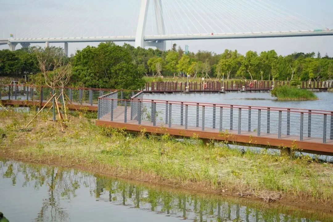 园区南侧水域新增560米跨湖观景栈道,成功串联起芒洲湿地公园的东入口与西入口,不仅妥善解决了以往“进出不同口”的不便,更让游客在通行中收获全新观景视角,沉浸式感受湿地风光。