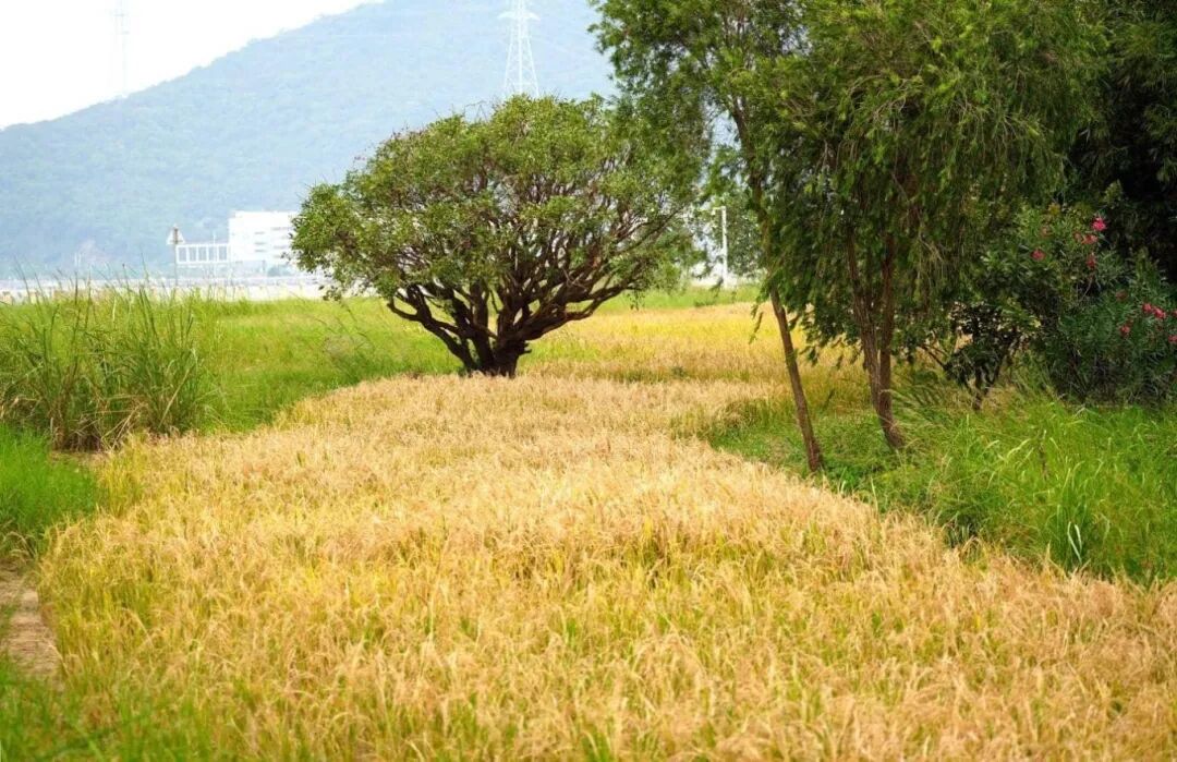 这里既是禾本科多样性展示点,也是耐盐碱咸水稻的展示区,不仅吸引本地及迁徙鸟类前来栖息,更成为黄胸鹀等极度濒危鸟类的家园,进一步丰富了芒洲生境多样性,也为芒洲增添一份金黄稻田的美景。