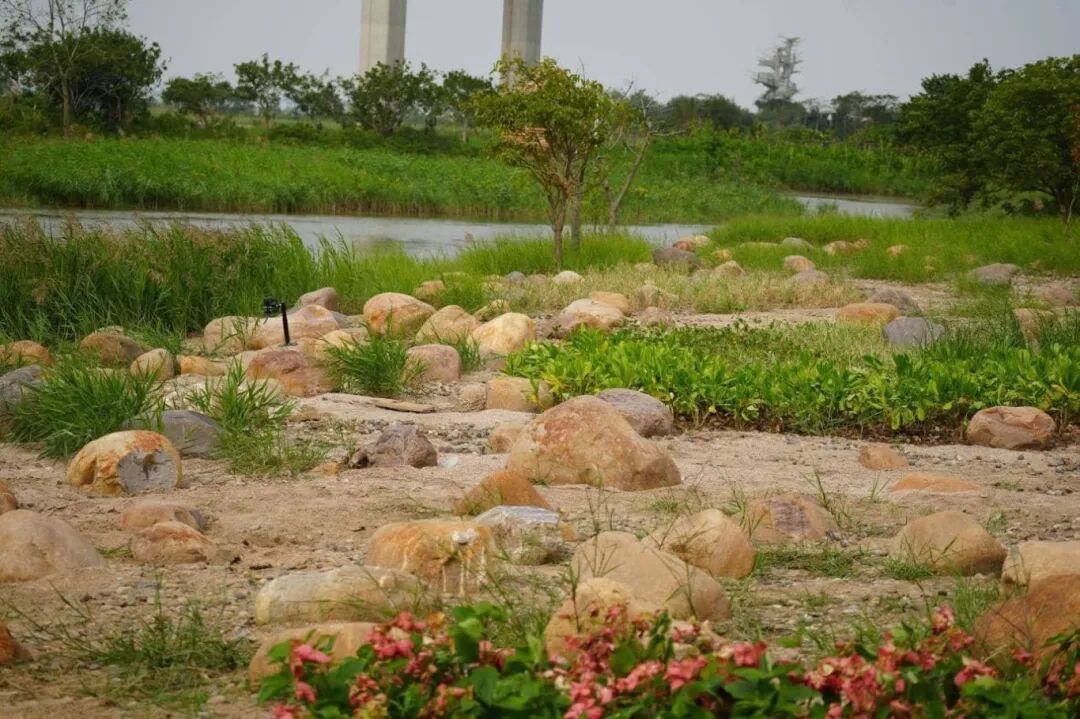 此次升级不仅完成了湿地红树林营造、跨湖栈道修建、科学水系疏通与传统桑基鱼塘恢复,更精心打造了芒洲湿地公园东入口3座竹韵观鸟屋、2处隐秘观鸟板,以及系统更新了全园的标识牌,搭配新增的十亩禾稻田与生态石滩,既深度践行绿色发展理念,更让这片湿地成为动植物的“自然庇护所”。