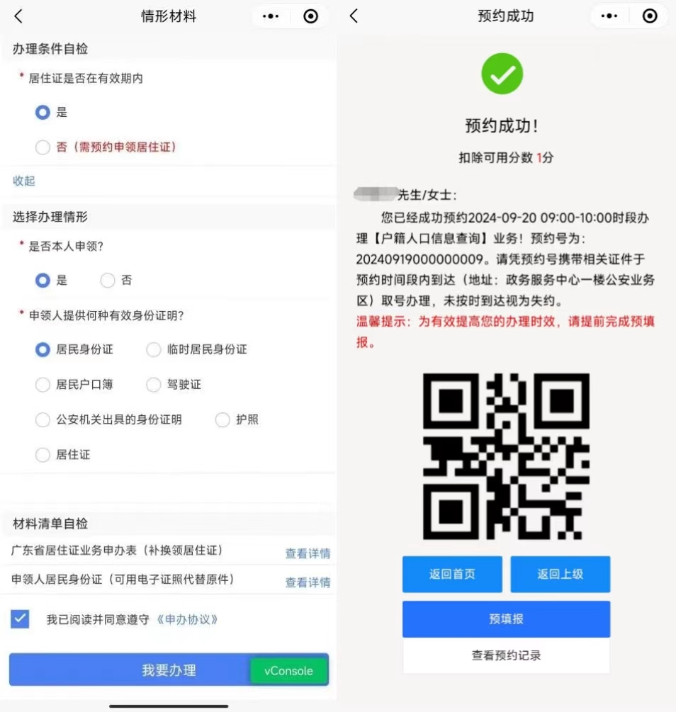 第四步:预约成功后,可在预约列表中查询预约记录、进行信息预填报或取消预约。