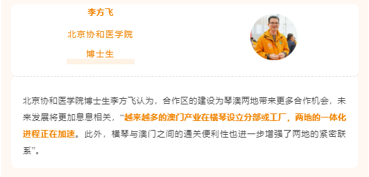 “当前,合作区作为国家战略的重要平台,正以优越的政策支持、完善的产业生态和宜居的生活环境,吸引全球英才汇聚于此,希望更多青年才俊把握机遇,投身琴澳这片创新创业的热土,与湾区共同成长,书写属于自己的精彩篇章!”