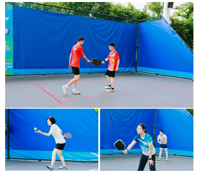 开幕式当日,匹克球项目机关组率先挥拍开赛,18支队伍亮相。
