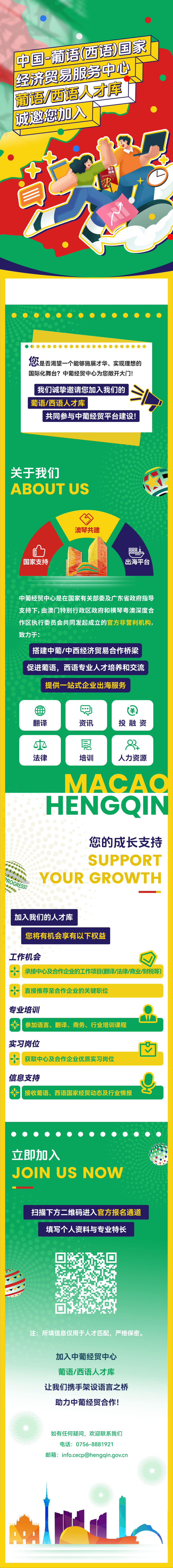 中国-葡语(西语)国家经济贸易服务中心正全力打造葡语/西语人才库,为语言精英搭建国际化实践平台。无论您是想打磨专业技能、开拓业务合作,还是寻找职位,加入我们,这里将是您职业跃升的新起点。立即查看人才库招募详情: