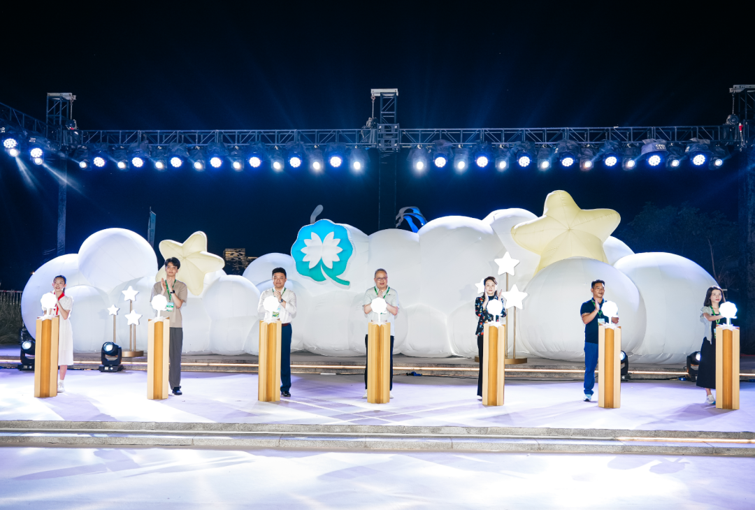 随后,由合作区行政事务局局长曹晋锋,澳资企业代表、真健康(广东横琴)医疗科技有限公司创始人张昊任,澳门新街坊居民代表黄滋才,横琴居民代表、向阳村网格党支部书记梁文贵,澳门创业青年代表、湾谷科技研究(珠海市)有限责任公司创始人黄茵,澳门跨境执业医生、横琴联合生命医疗主管缪永锐,以及本次活动表演人员代表、琴澳青少年合唱团成员郭芸熙担任开幕嘉宾,按下台上启动按钮,星条启动柱发出耀眼的光芒,现场由琴澳设计师共同设计打造的、代表琴澳区域与文化的梦幻气模被同时点亮。随着热烈的掌声与欢呼声,“2025年琴澳家宴”活动正式开幕!