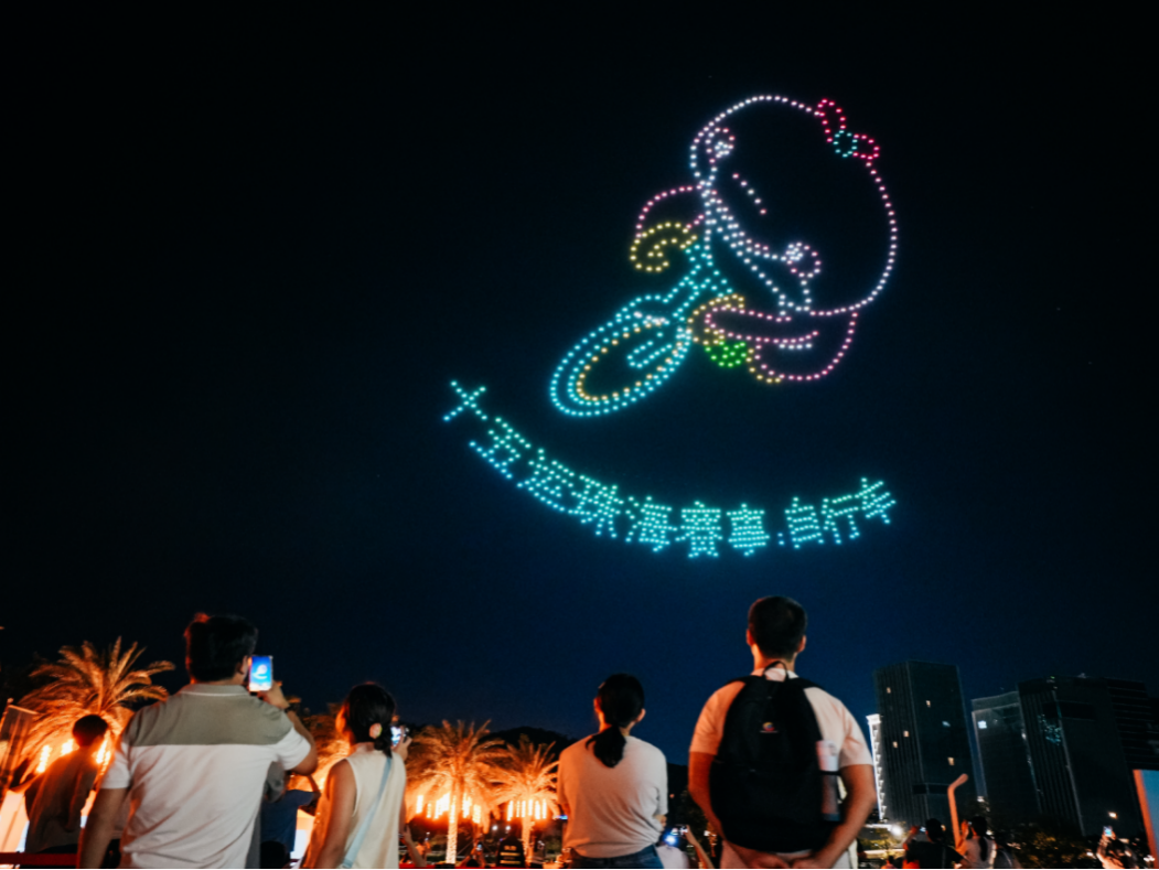 晚8时许,超700架无人机准时升空,在天上化作巨幅画布,编织出一幅流动画卷,相继排列出中秋、十五运吉祥物等造型,以及对国家繁荣昌盛的祝福,将现场气氛推向高潮。