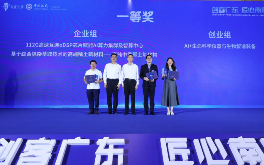 近日,在第十届“创客中国”广东省中小企业创新创业大赛暨第九届“创客广东”大赛决赛中,芯潮流(珠海)科技有限公司凭借“112G高速互连oDSP芯片赋能AI算力集群及智算中心”项目以第一名的成绩获得企业组一等奖。