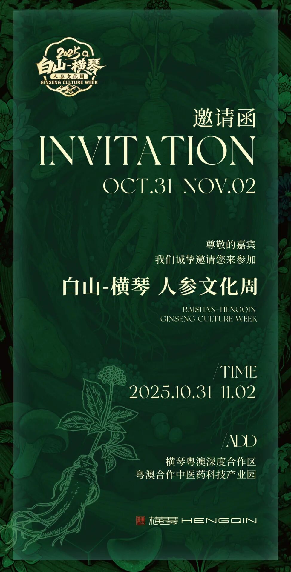 为传承中医药精华,推动横琴粤澳深度合作区中医药产业高质量发展,助力“长白山人参”走进粤港澳、走向海外,10月31日至11月2日,“白山-横琴”人参文化周将在粤澳合作中医药科技产业园举行。通过六大核心板块系列内容,呈现一场中医药文化盛宴,让市民游客近距离体验“百草之王”的魅力。