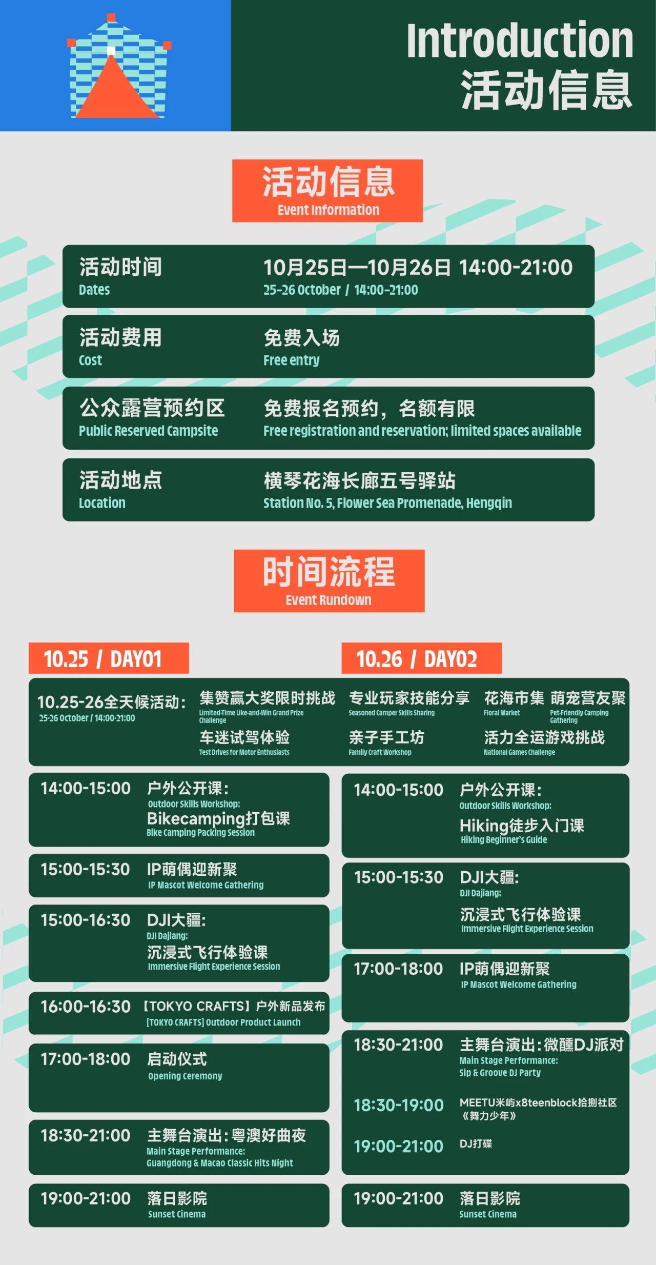 10月25至26日,这个周末,让我们以自然为营,在横琴的海风中共创美好回忆。