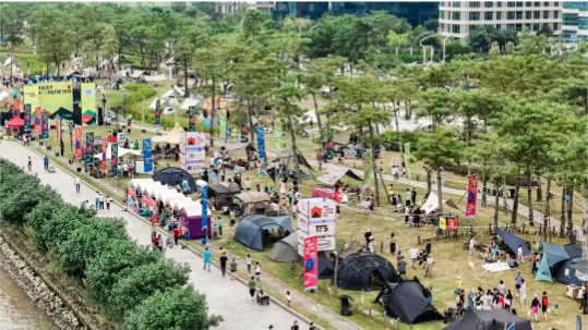 本届露营节规划的超7000平方米的营地,将城市绿洲与自然露营体验有机结合。