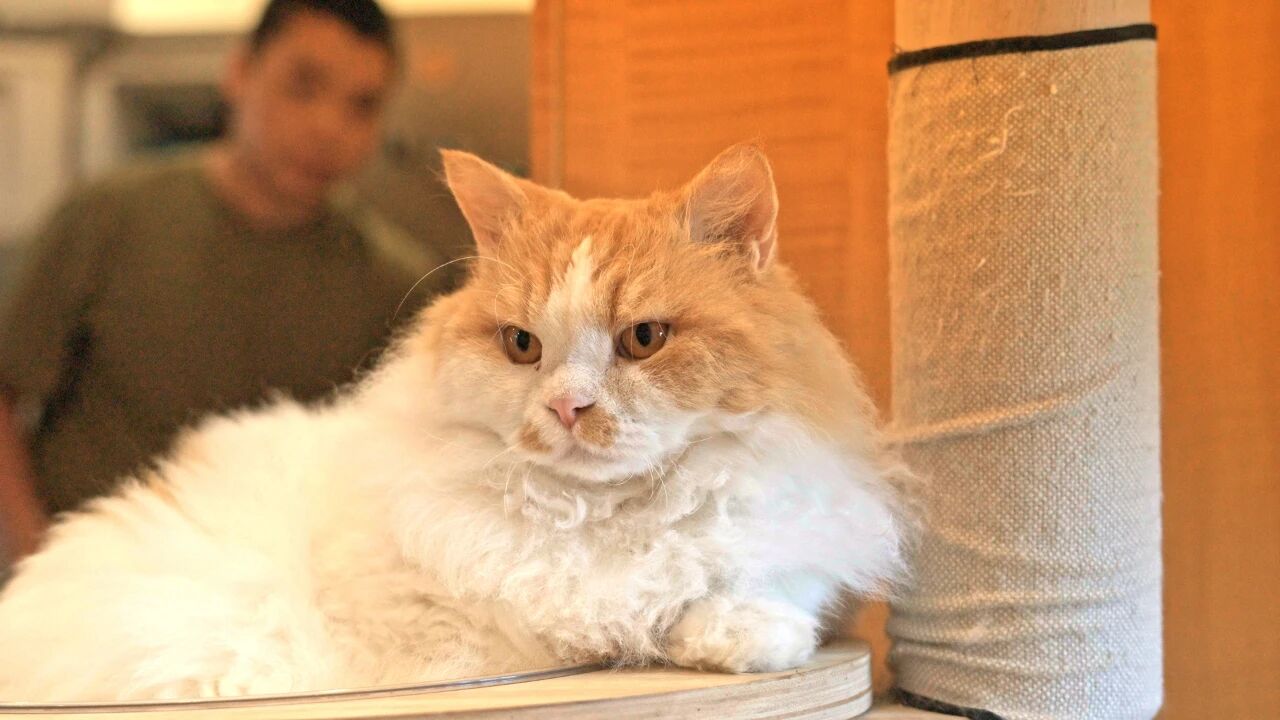 在瞿伟刚家里,角落放着猫爬架,这是“挛毛强”和“哨牙珍”两只猫游玩的乐园。带着粤语特色的名字,是澳门人瞿伟刚根据宠物的外貌特点起的,有着特别的爱意。
