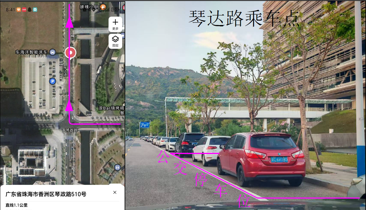2. 琴达路乘车点⇆横琴国际网球中心1号门