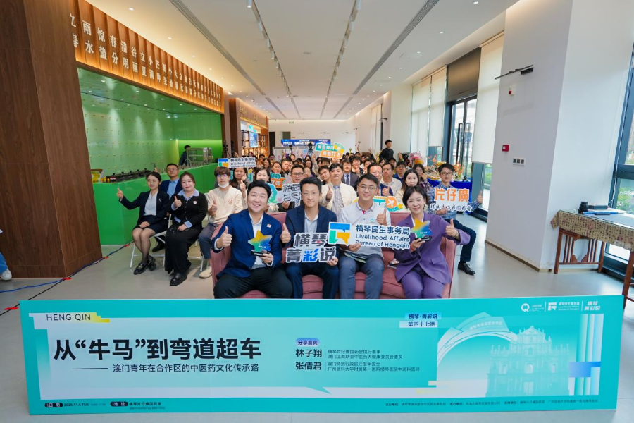 11月4日,第47期“横琴・菁彩说”在横琴片仔癀国药堂举行,聚焦“澳门青年在合作区的中医药文化传承路”,吸引线上线下共837人次琴澳居民、青年及行业人士参与。