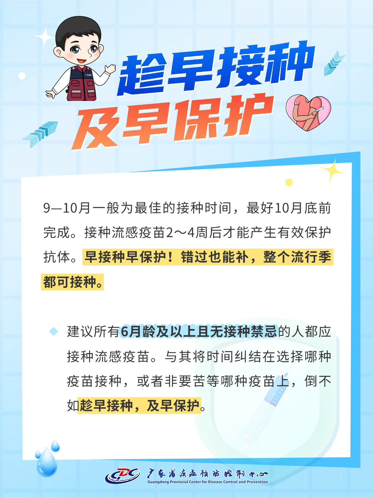 接种当季流感疫苗是预防流感最经济有效的手段,每年在流感流行季来临前接种疫苗,可以显著降低接种者罹患流感和发生重症的风险。接种流感疫苗可以显著降低学生等群体发生流感聚集性传染风险。