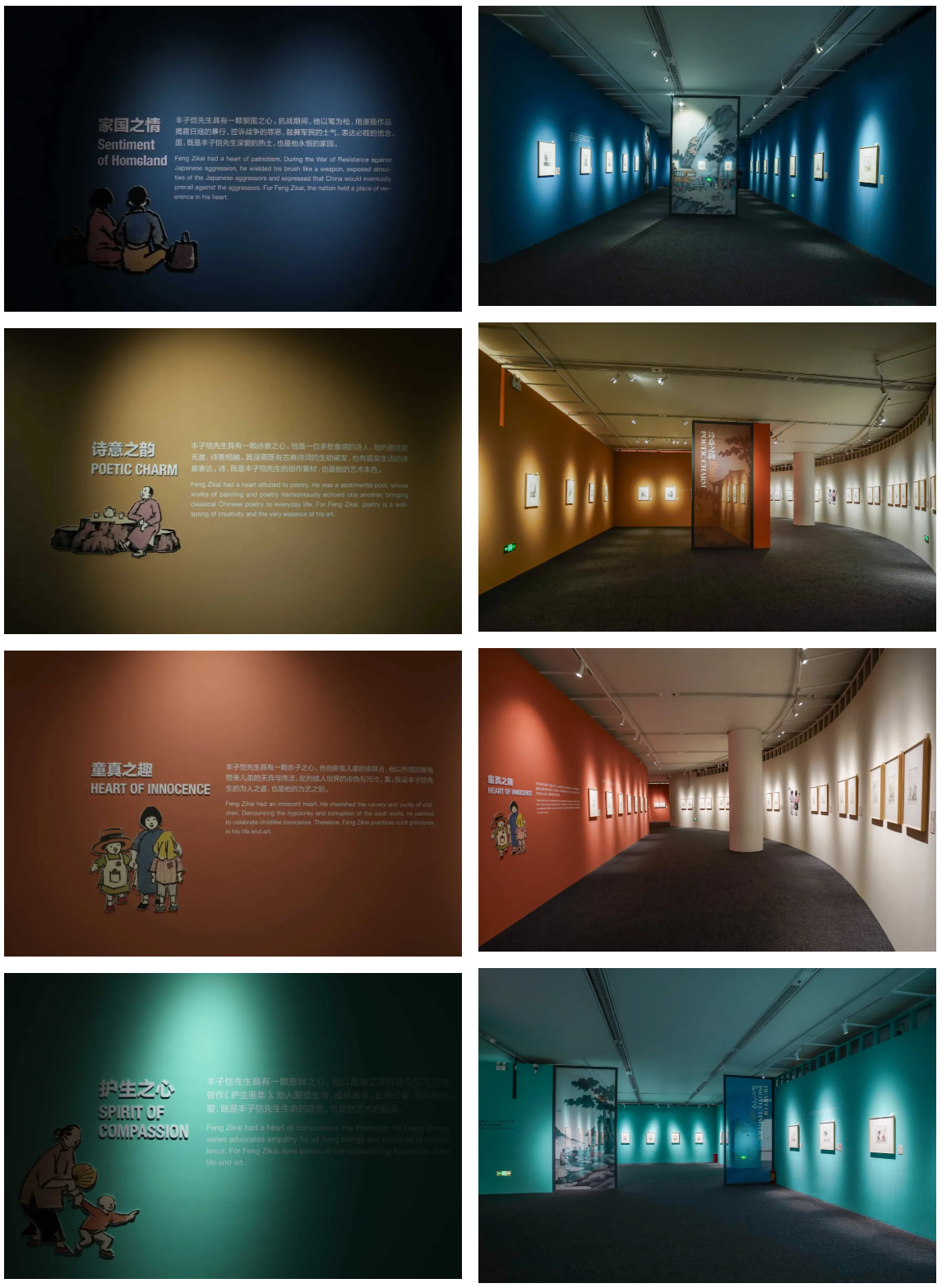步入展厅,丰子恺先生200件漫画精品精彩呈现,丰子恺先生的漫画世界围绕“家国之情”“诗意之韵”“童真之趣”“护生之心”四大主题徐徐展开,勾勒出充满人文关怀与生活意趣的艺术殿堂。