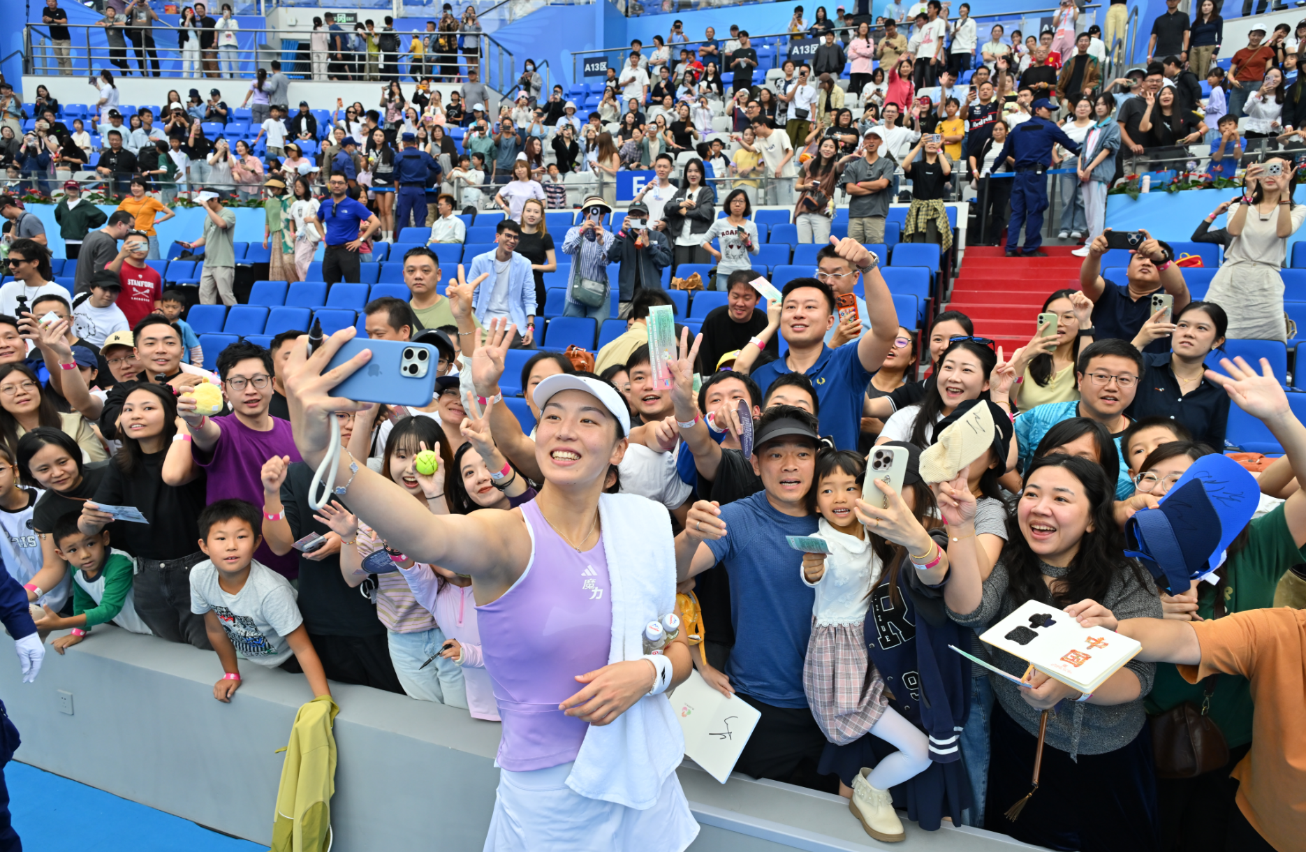 ▲王欣瑜与观众合影