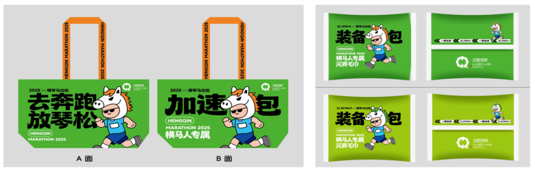 本次马拉松由横琴粤澳深度合作区行政事务局为横马人专门定制的“加速包”已就位!以跃马扬鞭之势,助你奔跑如风。slogan“放琴松”谐音“放轻松”,既点出赛事在横琴举办,也传递出健康奔跑、乐在其中的生活态度,整体设计风格年轻、简明,契合合作区时尚、活力的国际形象。完赛即可解锁“横马人专属毛巾”,见证你的荣耀冲线时刻。
