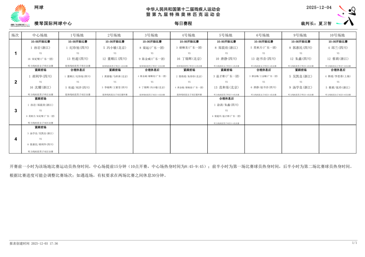 12月4日,本届残特奥会网球比赛迎来收官之日,最后七枚金牌将会产生,其中轮椅组包括男单、男双、女双,听障组包括男单、男双、女单和女双。