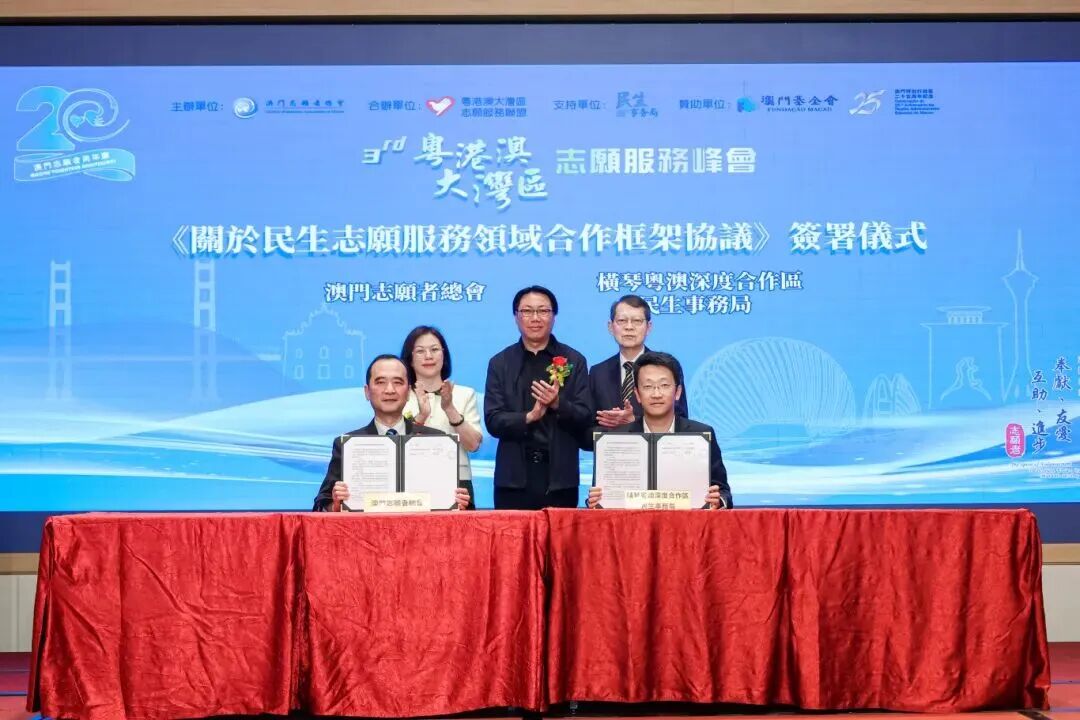 与澳门志愿者总会签订《关于民生志愿服务领域合作框架协议》,落地系列跨境志愿服务活动,主动吸纳澳门志愿者加入、融入澳门服务元素,实现资源互通、优势互补。