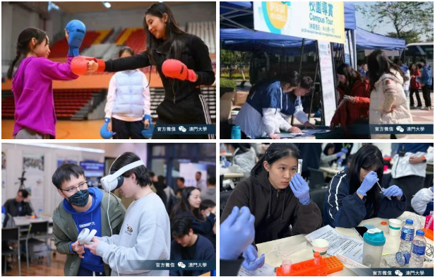 全家出游的访客则能参与各学院、书院、实验室精心准备的互动摊位游戏、趣味科学实验、特色工作坊与知识挑战竞赛,欣赏精彩的文艺视听表演,在欢乐中感受澳大的校园文化。