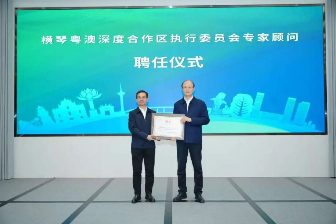 活动现场,广东省委横琴工委副书记、省横琴办主任、合作区执委会副主任聂新平为郑健颁发聘书,正式聘请其担任横琴粤澳深度合作区执行委员会专家顾问。聘任仪式后,石振明代表同济大学向合作区致赠礼物——复兴号高铁模型,寓意双方未来在轨道交通领域的协同发展与紧密协作。