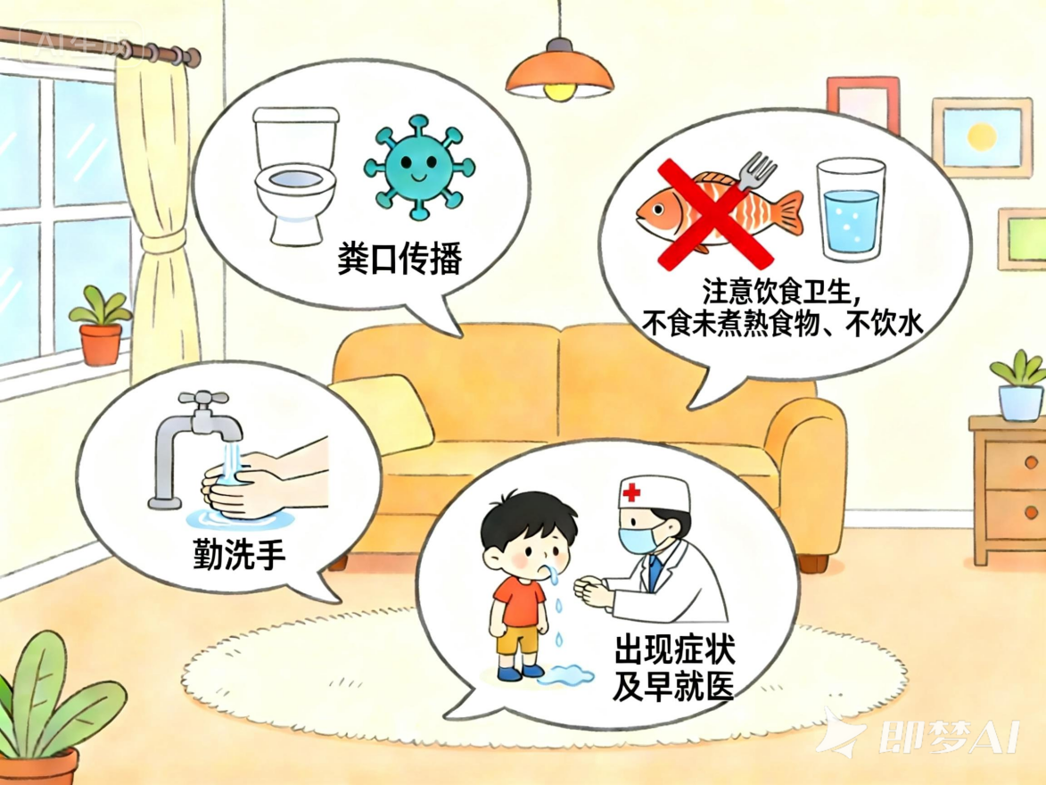 对于患者的呕吐物和排泄物,需使用含氯消毒剂进行处理,患者应居家隔离,直至症状消失后至少三天,尽量避免接触易感人群。