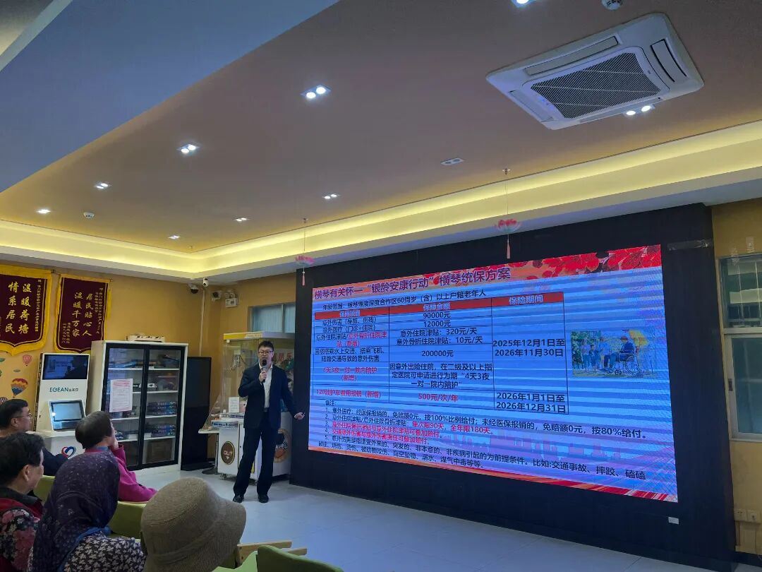 2025年12月,“乐享银龄·悦在社区”主题系列活动先后走进合作区小横琴、新家园、荷塘和莲花四个社区,中国人寿保险股份有限公司珠海分公司工作人员为长者解读2025—2026年度老年人意外伤害综合保险政策,用通俗语言拆解保障细节,让长者们听得懂、记得牢、用得上,还为每位到场长者逐一发放保单凭证,切实打通服务长者的“最后一米”。